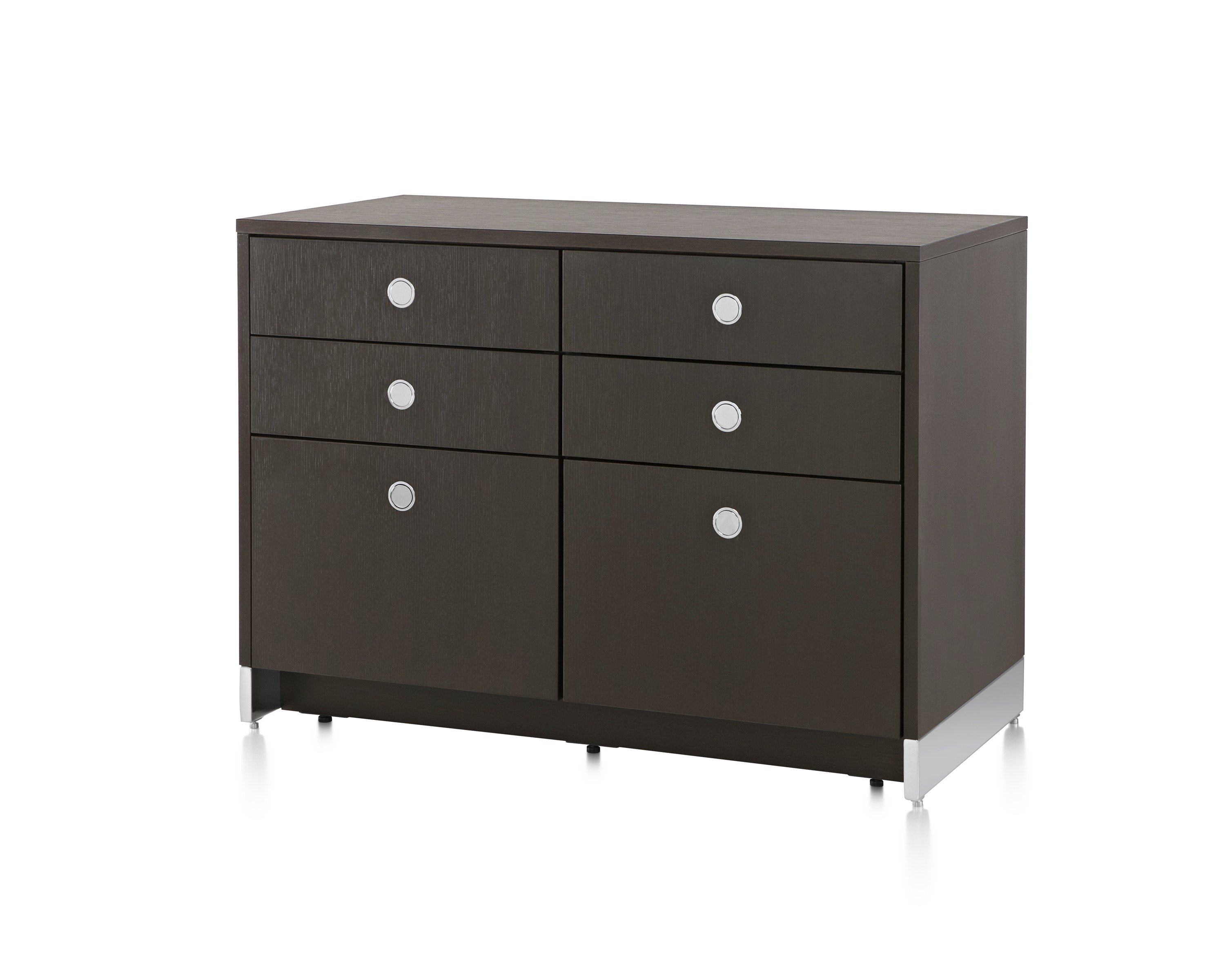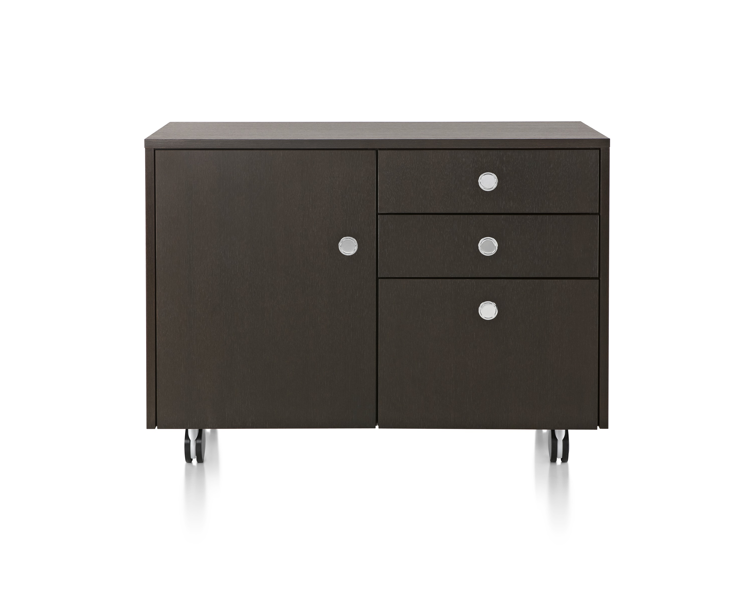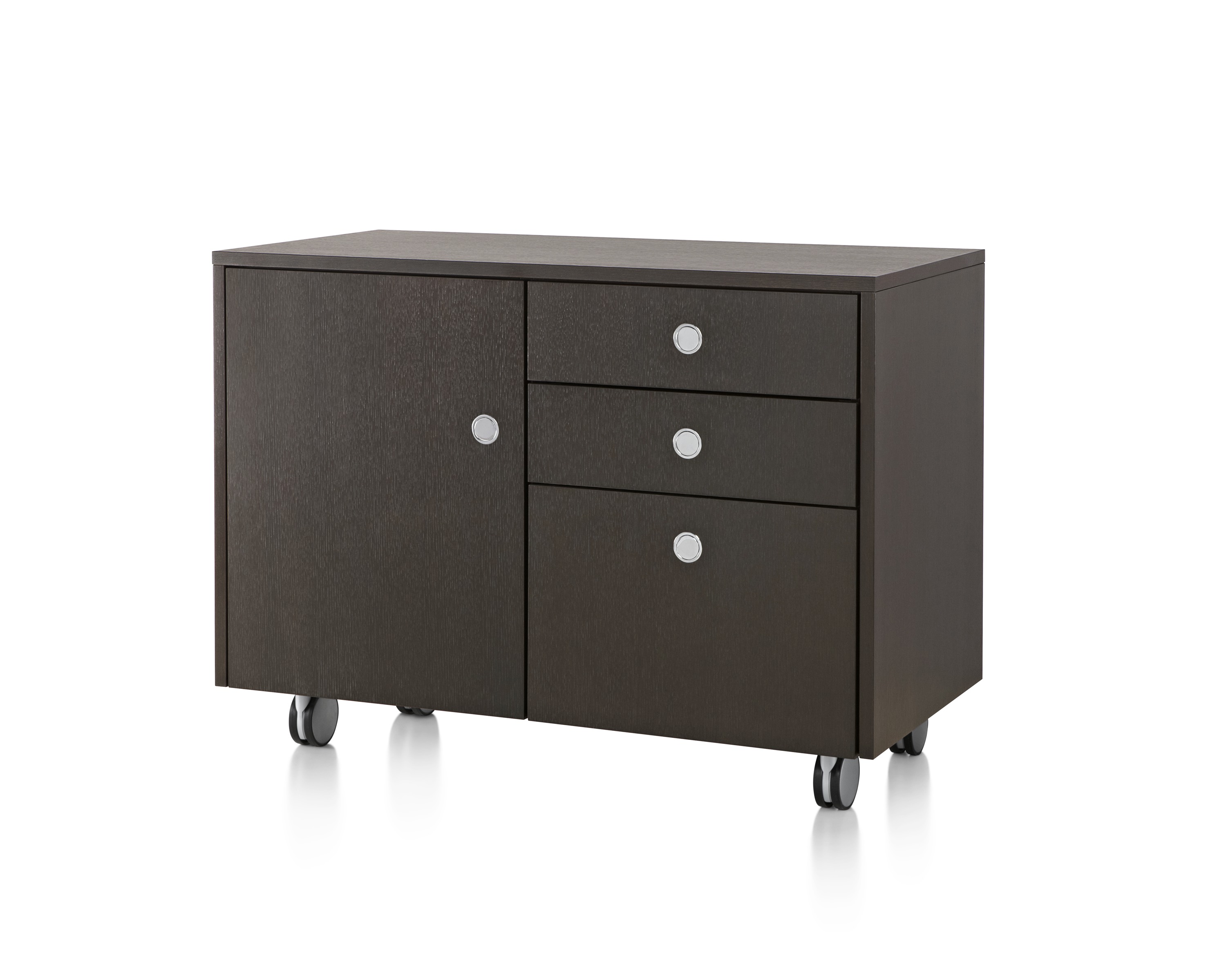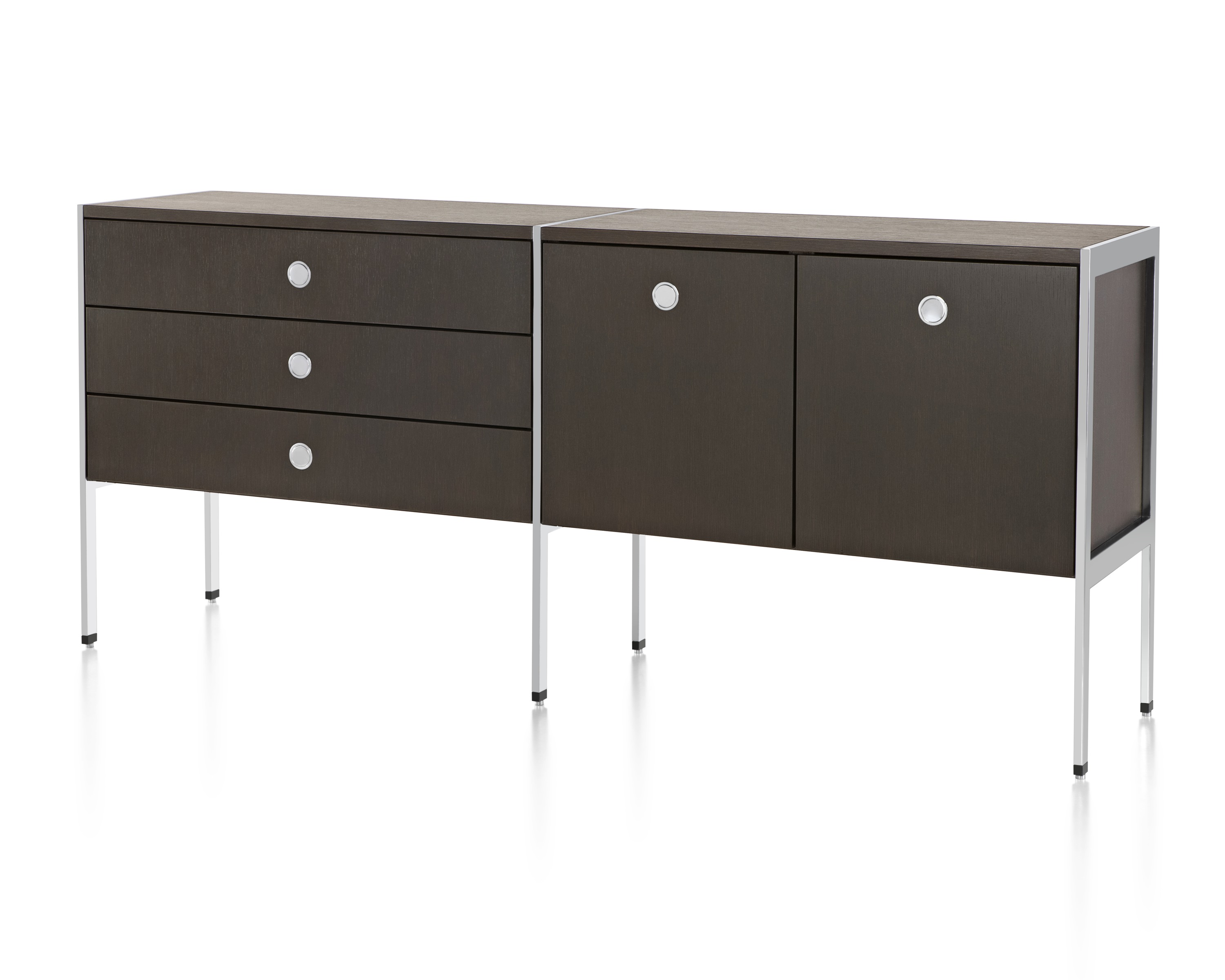 凭借其优雅的网格设计:抽屉、文件抽屉、以及左、右开合橱柜,Ward Bennett Sled底座储存柜为存储问题提供了一个精致的解决方案。采用模块化设计,Sled底座储存柜备有各种宽度,从单一的抽屉柜直至四个单元组成的立柜。配有各式各样的饰面、橱柜或抽屉配置,以及各种可能的插件选项,让Sled底座储存柜能够适应各种用途和环境。单柜和双柜还配有脚轮,可用作移动推柜。