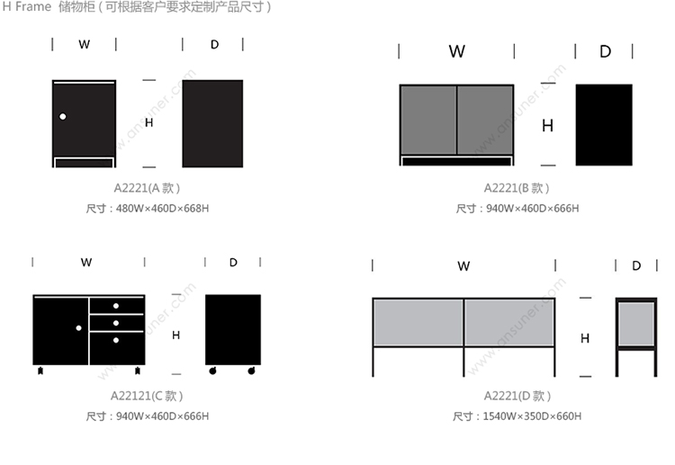 H Frame 储物柜 系列尺寸/示意图