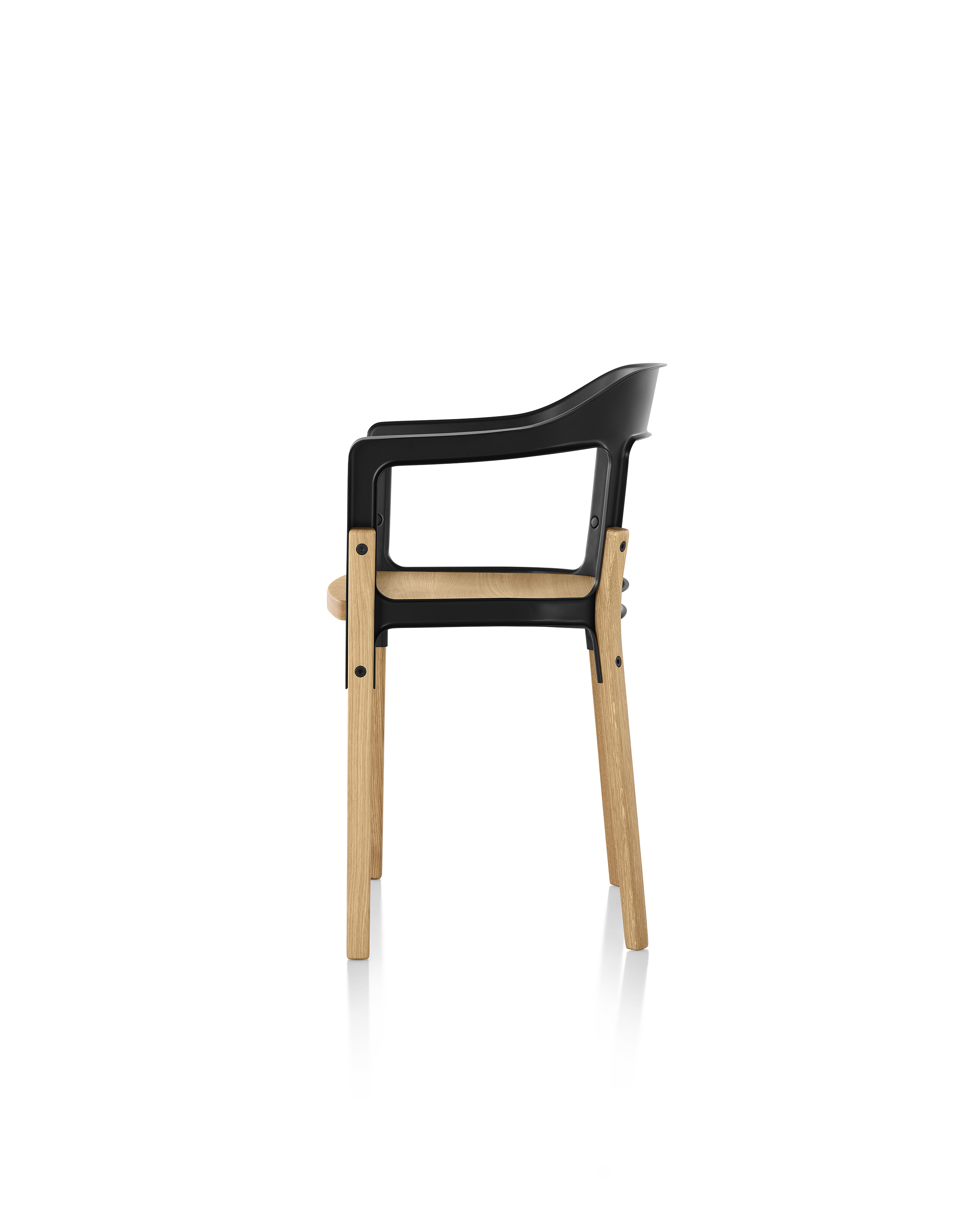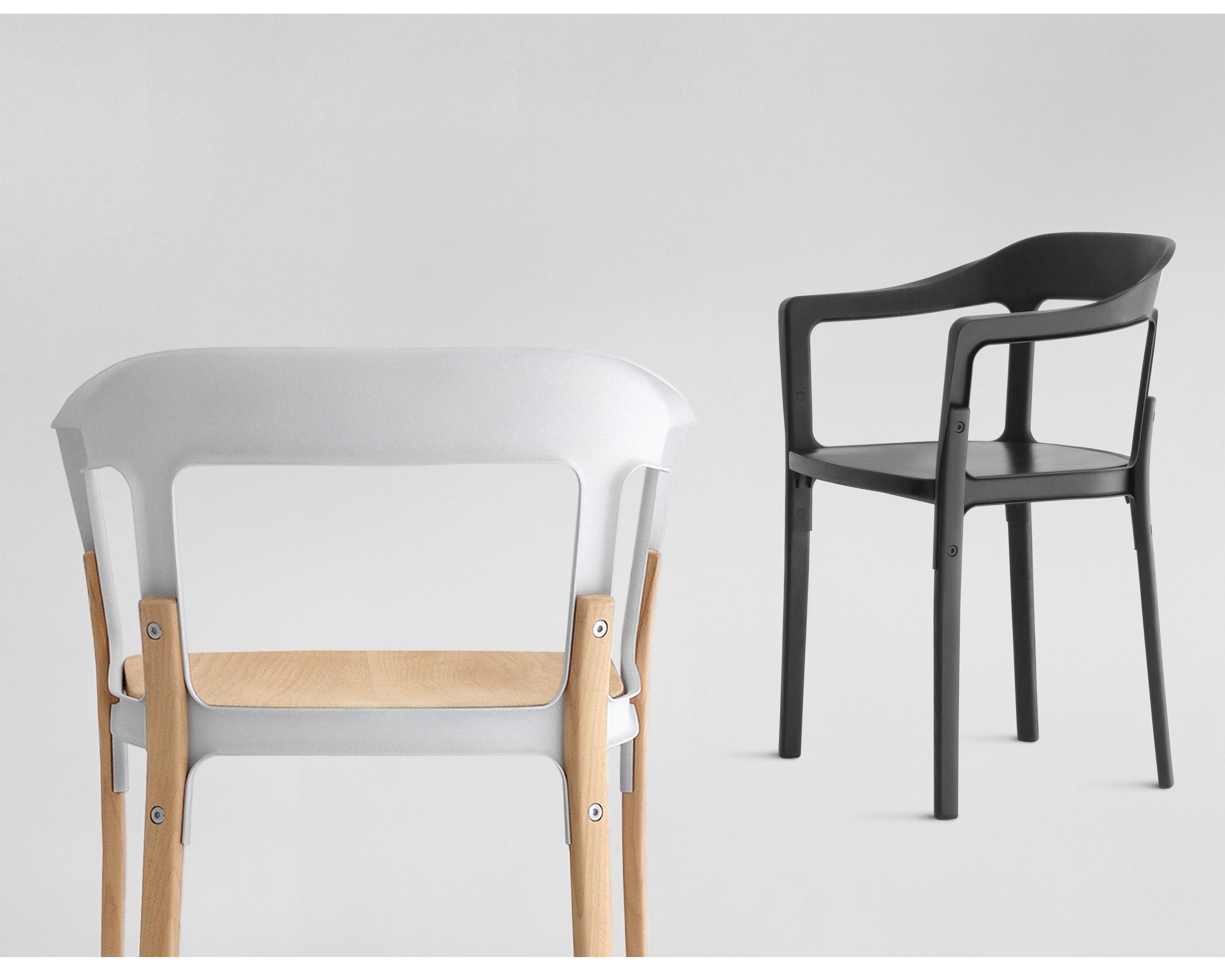 Ronan和Erwan Bouroullec称他们的Steelwood椅子“稳定、民主、普遍、持久”。“设计巧妙地结合了两种传统材料,木材和钢材(涂漆和镀锌版本)来传达温暖和力量。”这种组合有助于休闲或优雅的设置和选择的软垫座椅提供额外的舒适。