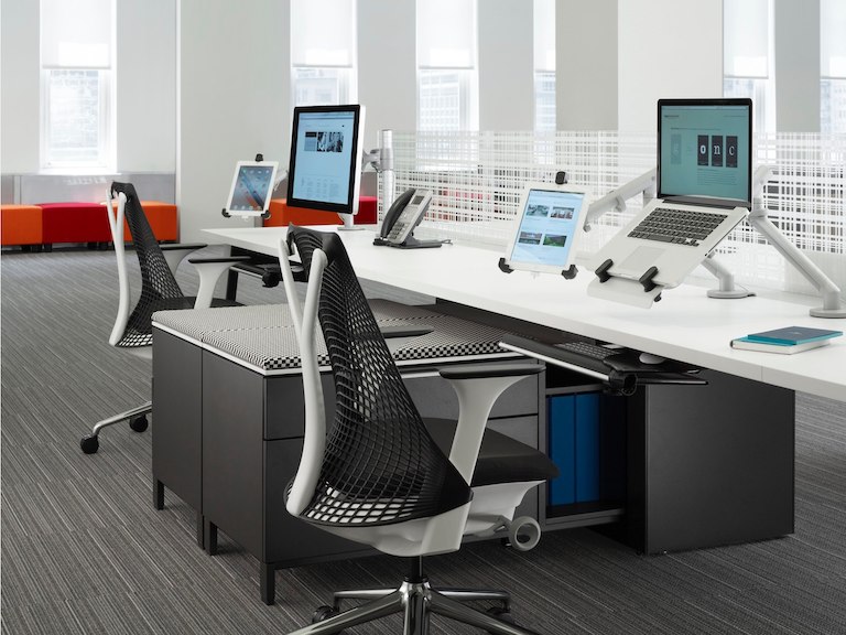 笔记本电脑支架将笔记本电脑从工作台面抬起,使工作人员能够采用更好的姿势,避免眼睛疲劳,同时清除宝贵的桌面空间。 需要外接键盘和鼠标。