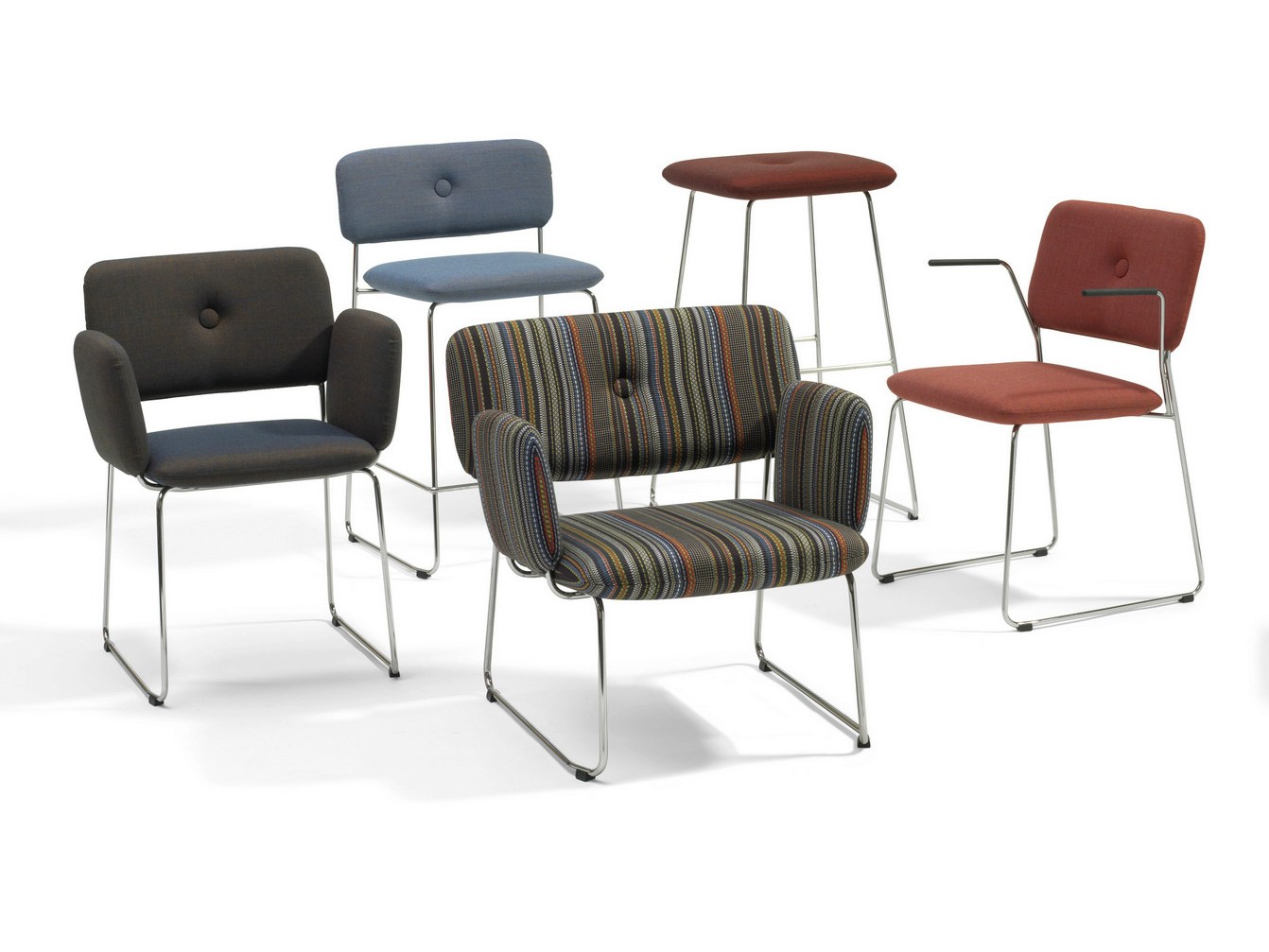 Dundra椅子-Dundra椅子是围绕镀铬钢框架构造的,带有模制座椅,然后进行软垫。带盖按钮是该家具系列的标志之一,有助于确保靠背保持其预期的形状。Dundra椅子是酒店内的餐厅,酒店和图书馆的绝佳选择。镀铬钢框架。模制聚氨酯泡沫的座椅和靠背。织物或皮革覆盖物。塑料支脚。绿铬(铬III)。其他饰面也可提供带CMHR泡沫的版本。座高465 mm,总高695 mm,座宽555 mm,总宽680 mm,座深550 mm,总深720 mm。