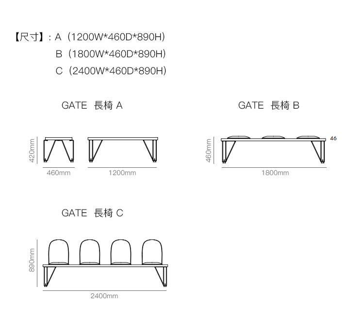 伯格·林道· 约翰·林道(Börge Lindau, Johan Lindau)共同设计GATE,门是公共区域的可链接长凳系统。长凳有两个笔直和两个弯曲基本单元可用。使用门基本单元形成直行,弯曲或直角的行以适合其设置。可以根据需要配备靠背和/或座椅。座椅:圆形或直形软垫。靠背:圆形,直形,整体软垫。台式胶合实心桦木厚40毫米。镀锌钢框架。皮革或织物覆盖的软垫座椅。阻燃聚醚泡沫塑料内饰。压缩桦木靠背。座椅高度420 mm,总高度890 mm(含靠背),总深度460 mm,座椅Ø。 390毫米,CC座650毫米,长度,2座1200毫米,长度,3座1800毫米,圆形,1,5座45°,圆形,2座60°。