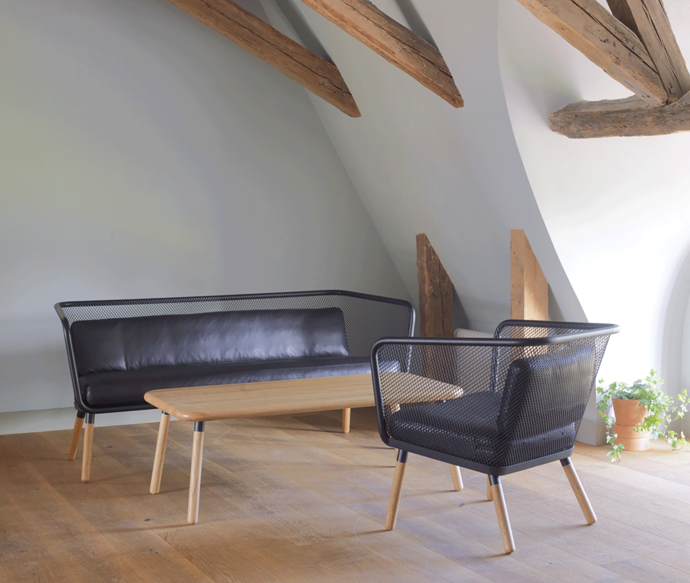 所述Honken范围包括扶手椅,桌子,长椅,咖啡桌。 Honken是,与扶手椅莫里斯JR和波佩,实验2015的一部分一起