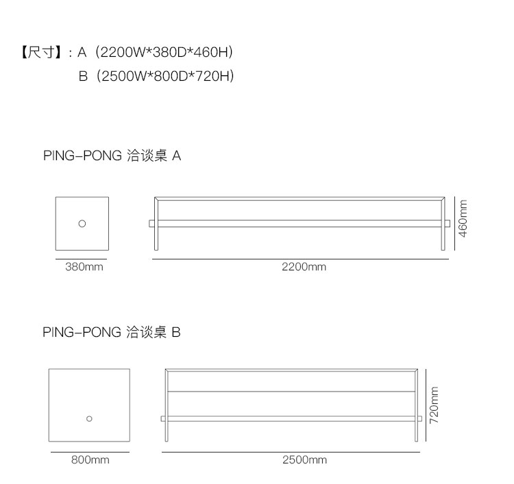 PING-PONG 洽谈桌/餐桌 系列尺寸/示意图