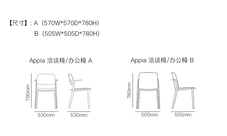 Appia 洽谈椅/办公椅 系列尺寸/示意图