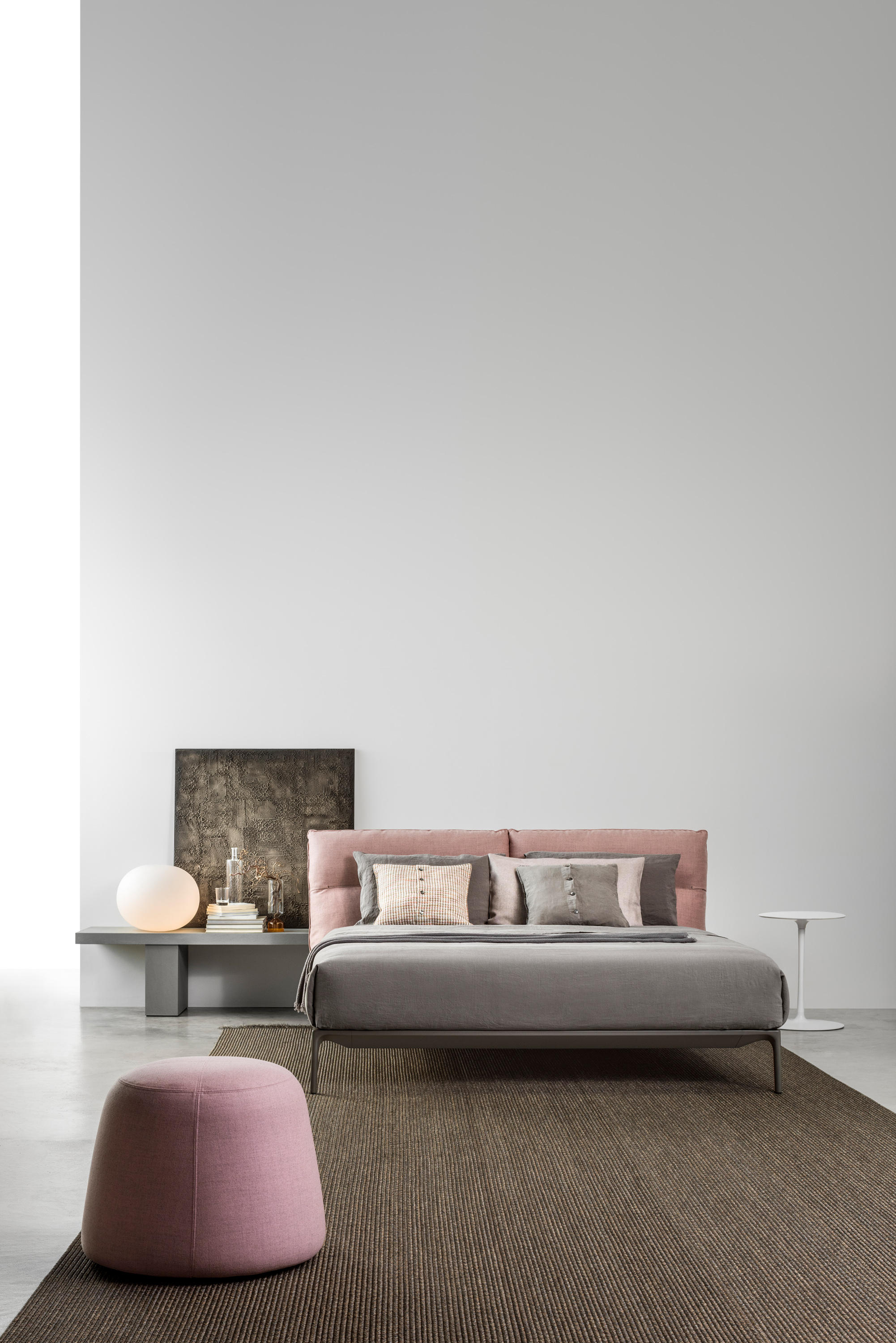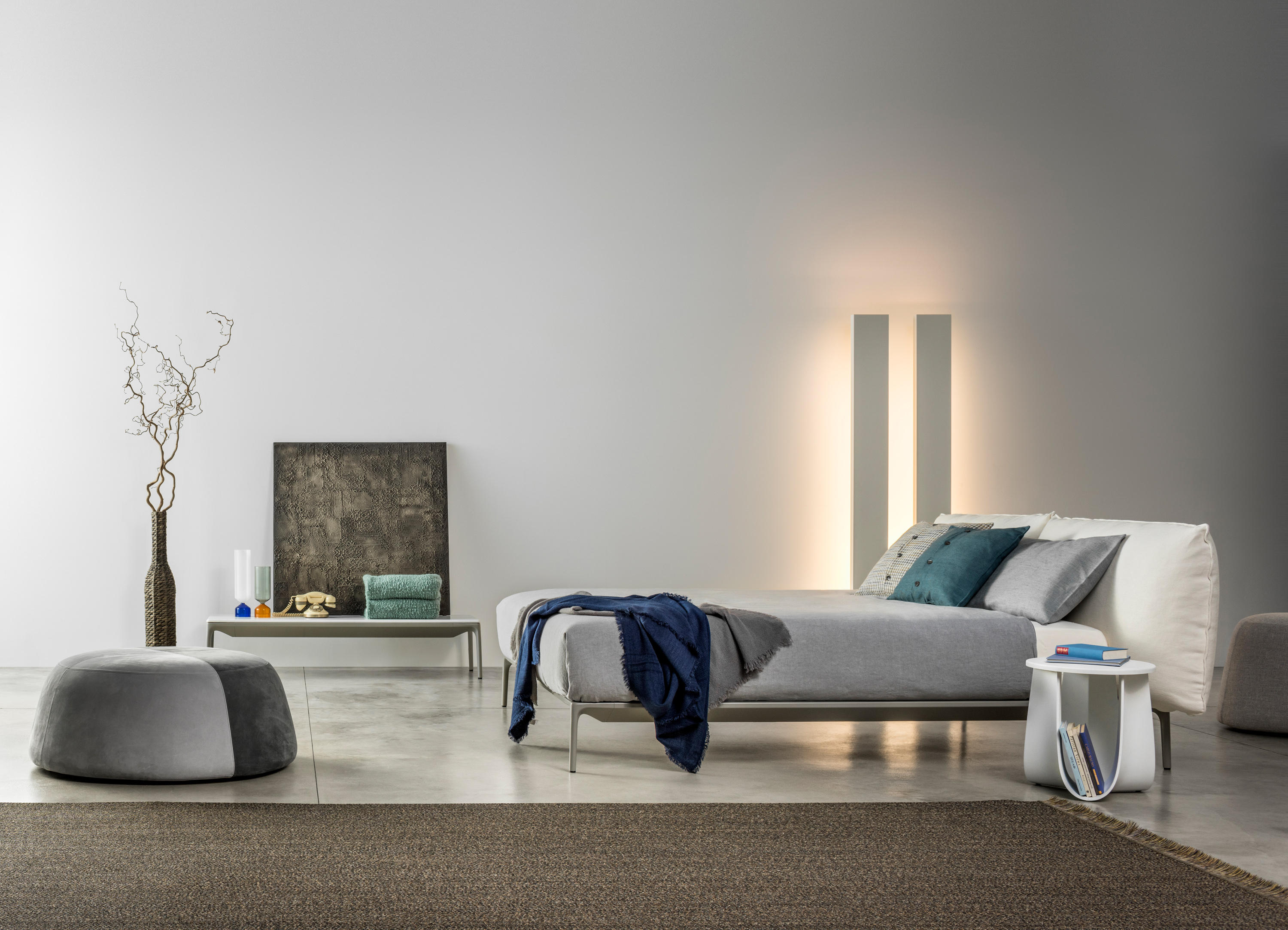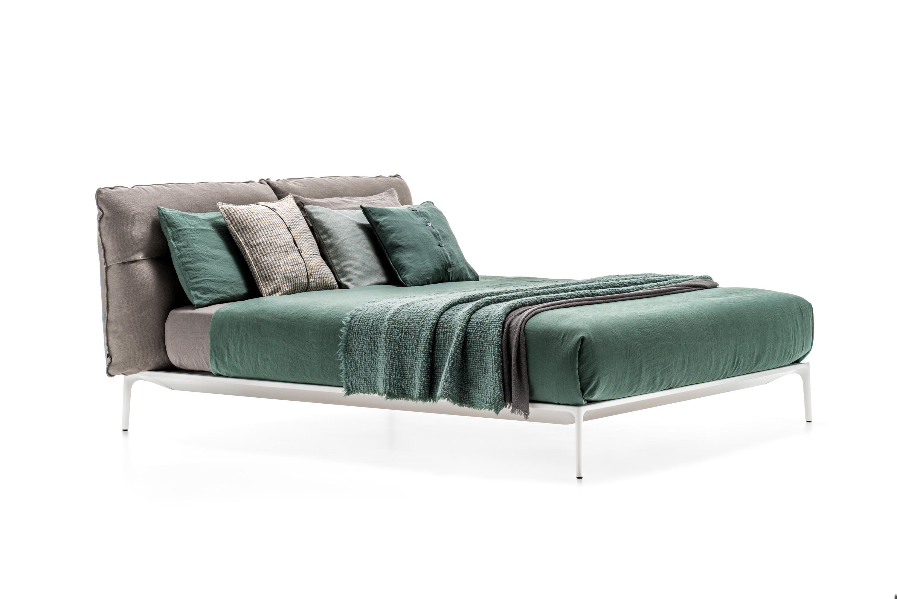 床在不同的版本: •版本具有低床头板 •版本具有高床头板 结构 。在挤压铝,铝压铸腿结构 。在颜色白,灰石和无烟煤灰色的结构绘无光泽 覆 在所述的内饰织物或皮革覆盖床头板的每一个部分,是完全可拆卸的。 如果需要,可选的附加盖是可用的。在皮革所有单位可能,这取决于它们的大小和MDF Italia与自由裁量权,一个或多个接缝。 接缝 这些对比的接缝中的颜色白,中灰和无烟煤,这可以通过在客户端进行选择和组合的表征和识别耶鲁床收集,只为高床头变体。可用的。 板条和矫形平台 承重矫形平台在40x30mm部,粉末涂层。钢管 固定结构,具有在层叠山毛榉厚度板条8mm时,宽度70毫米并装有调节游标。移动光标沿着板条的长度允许在后腰调整刚性区域,并根据个人需求和身体形状调整床形。 骨科平台桦木胶合板,厚度为20mm,涂上水性涂料,与横槽的床垫通风非常支持统一的舒适性,刚性和更好的支持。 注:板条和骨科平台是专门设计为插入在Yale床周边结构中,它们的尺寸减小到适合该床的大小。无法安装倾斜元素。