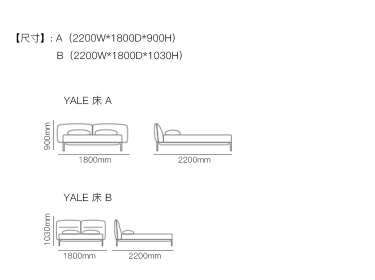 YALE 床 系列尺寸/示意图