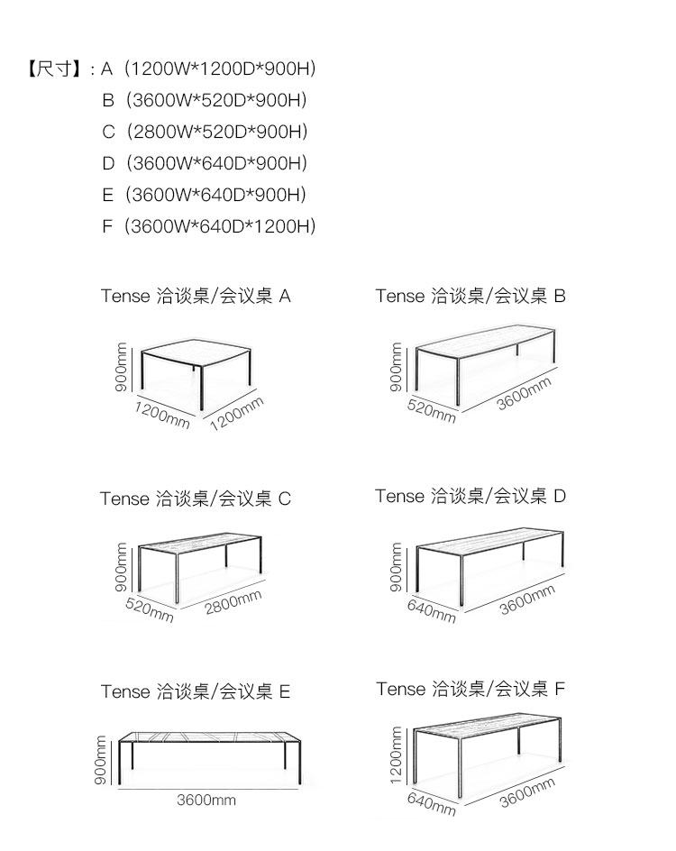 Tense 洽谈桌/会议桌 系列尺寸/示意图