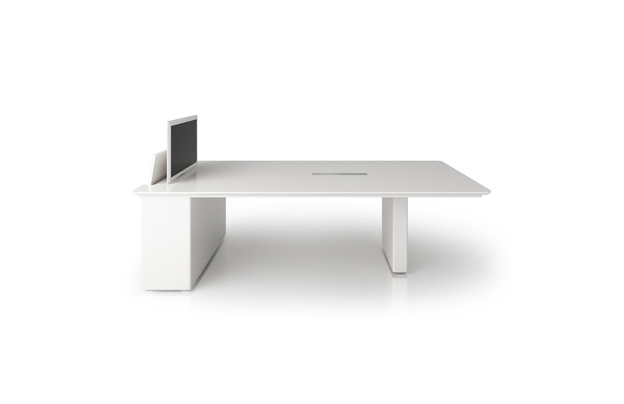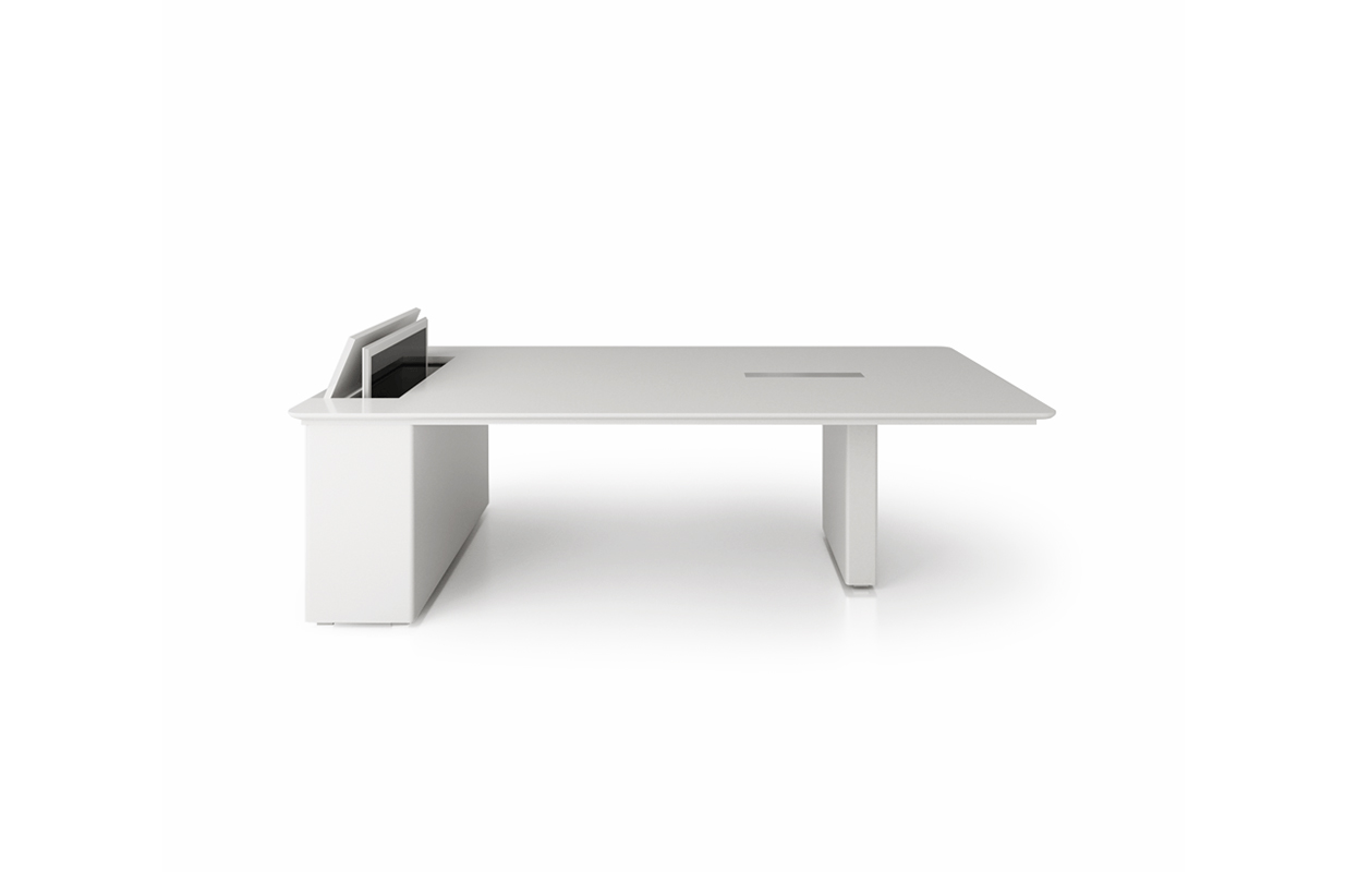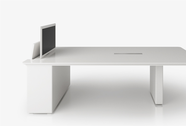 结合多媒体技术的X6系列配有内置隐藏式40寸显示屏幕,极具未来感的极简设计、完美的做工,可为各式的多人会议、演示、讨论提供最佳解决方案。人性化的设计,只需将电脑与主机相连,显示屏幕便会自动从桌面滑出。X6整合Plug&Play系统以及操作面板,可与任意一款P&P设备组合使用。