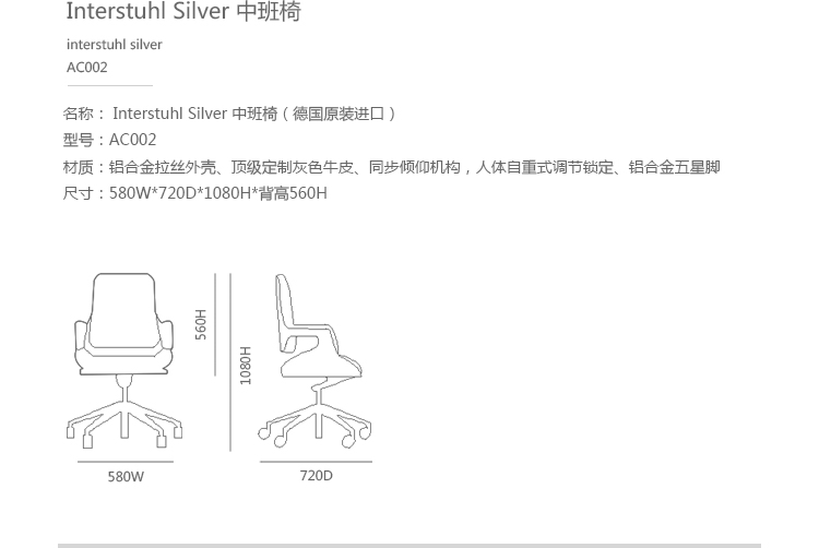 办公椅|现代真皮中班椅|办公家具|设计师家具|Interstuhl Silver 中班椅