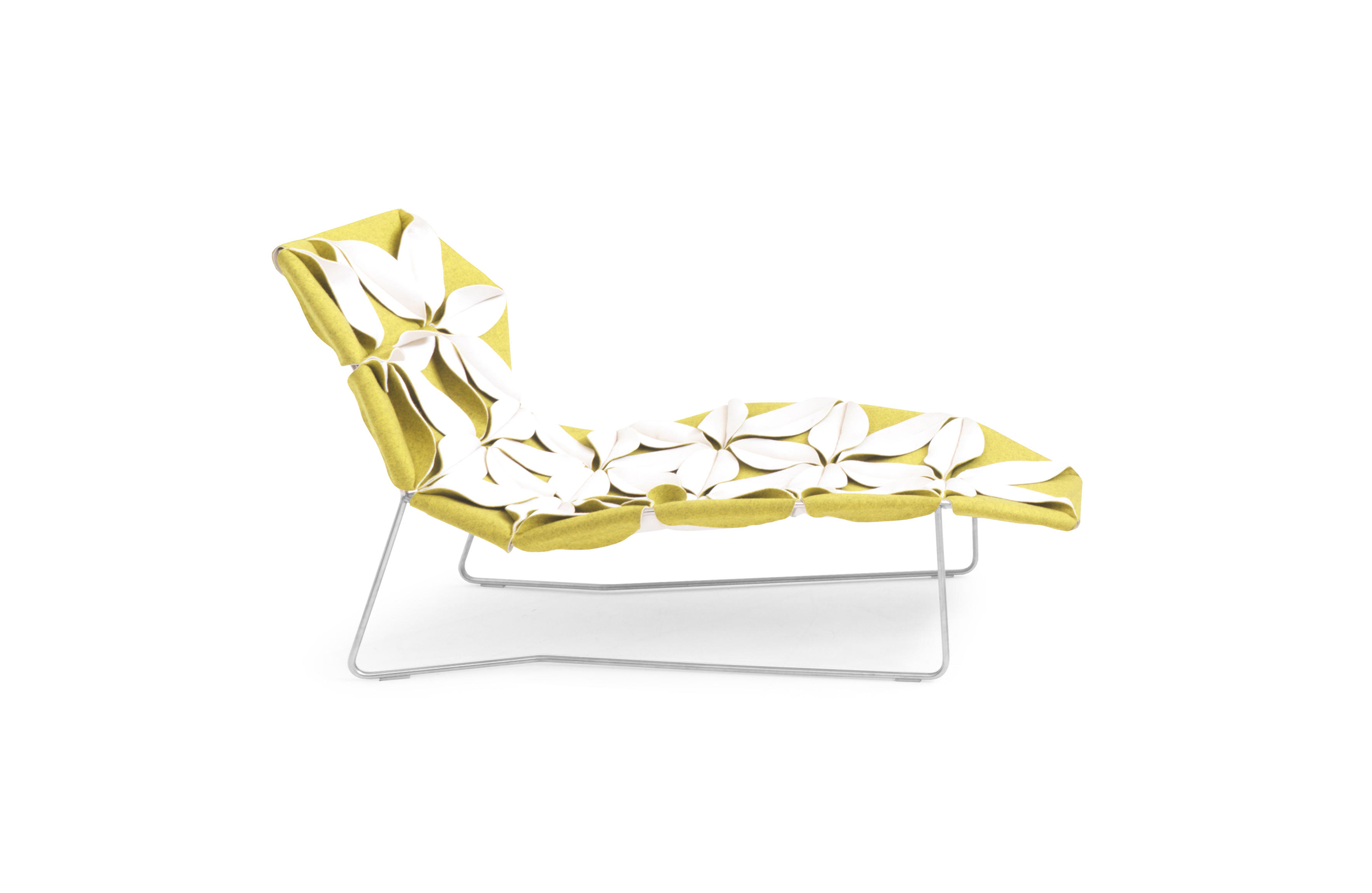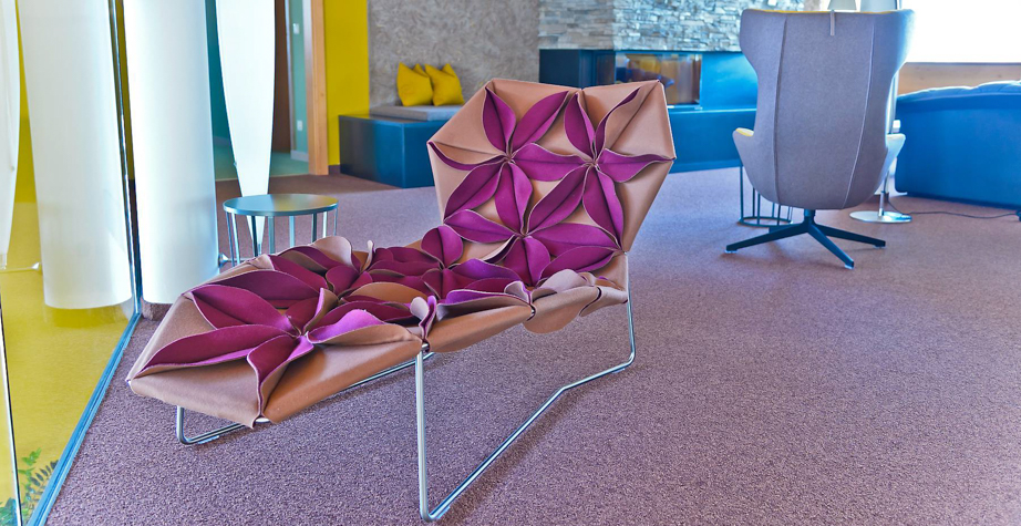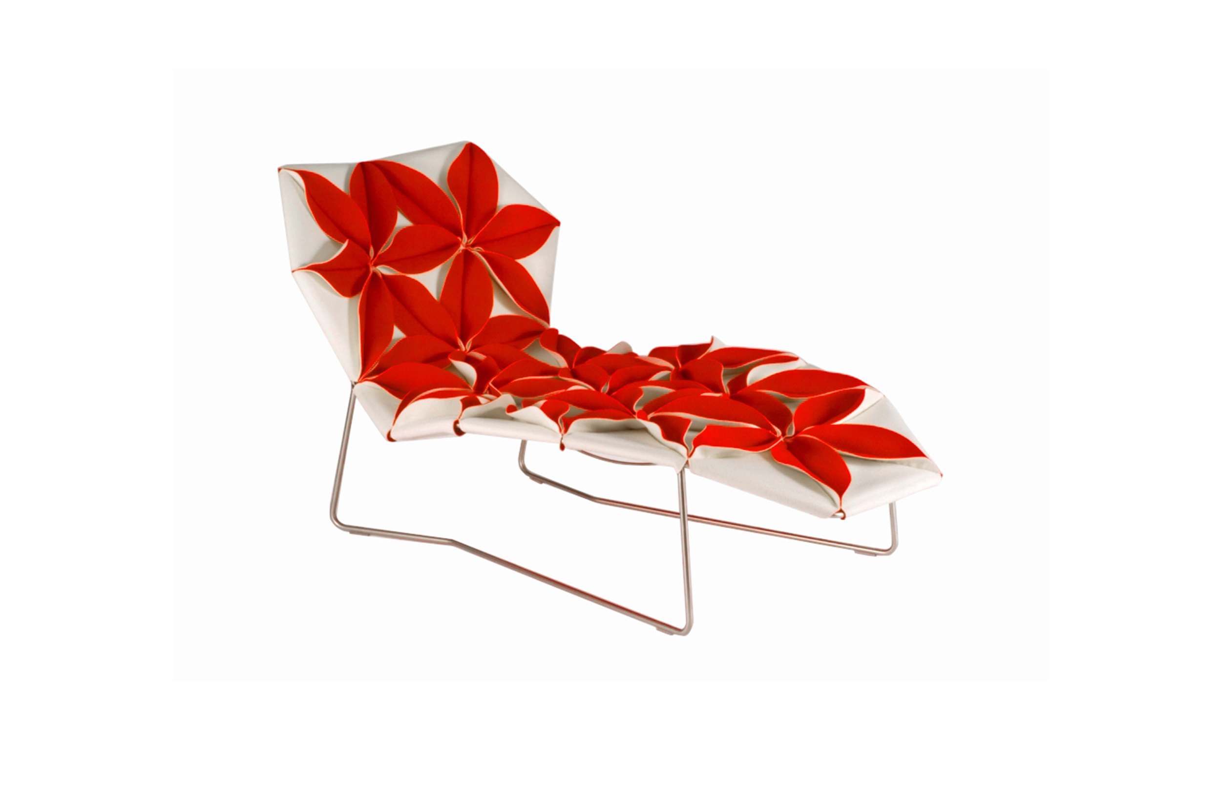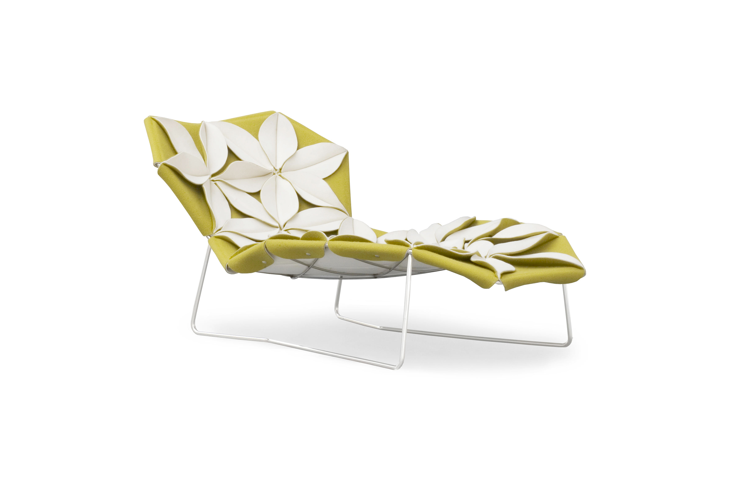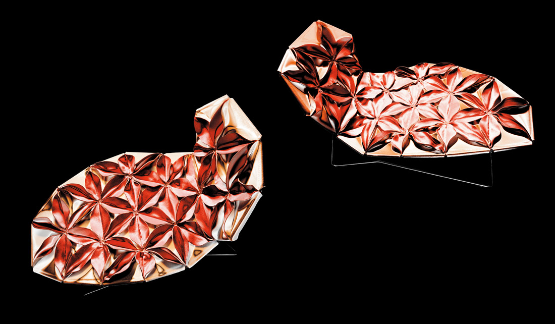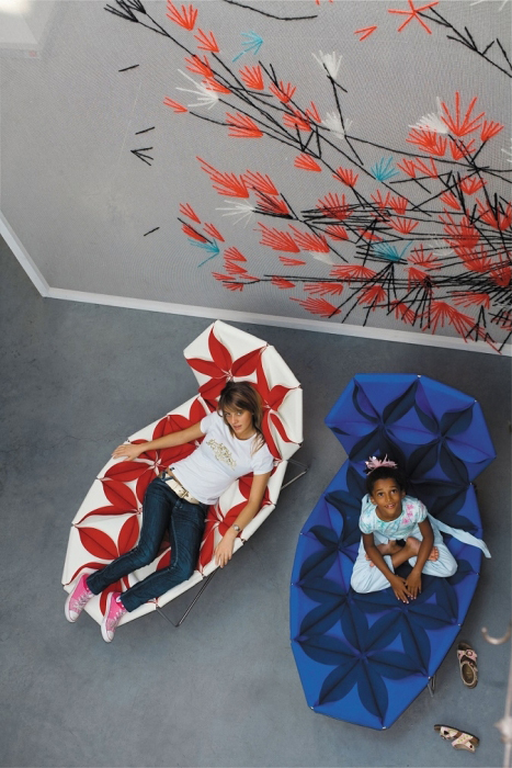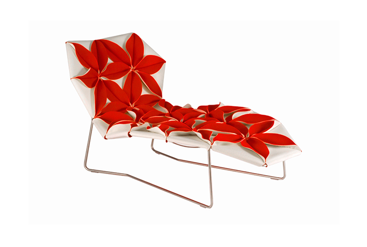 座椅上花瓣綻放的效果,傳達著兩種截然不同的情緒。花瓣向上伸展賦予了一種獨特而女性化的蓬勃的生氣;而向下的花瓣則顯得格外嚴肅認真。