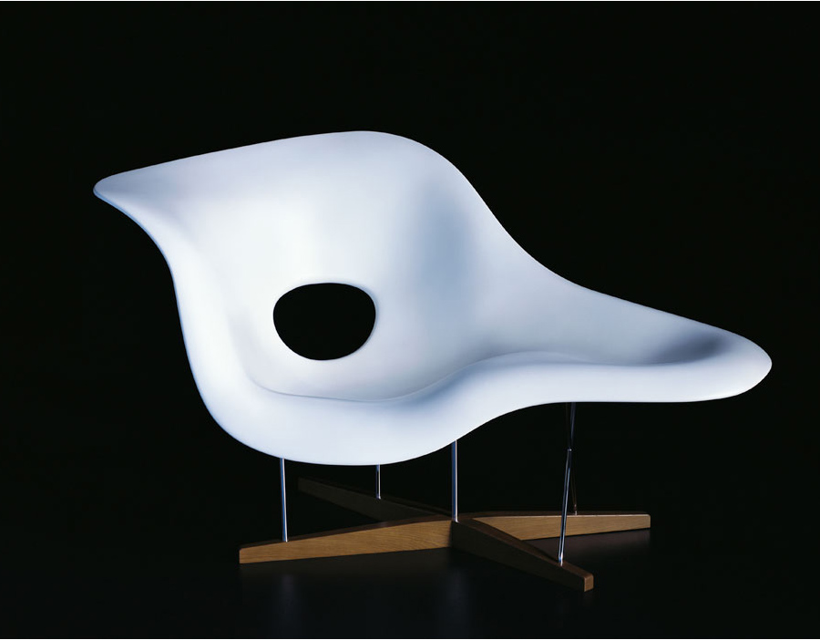 Charles & Ray Eames 以 “流動的線" 為概念設計出了 La Chaise。靈感來自法國雕刻家 Gaston Lachaise 的雕塑品 Floating Figure(漂浮人像),Charles & Ray Eames 為斜臥的仕女找到了一個得以簡單休憩的處所。La Chaise 無可挑剔的優雅,或坐或臥讓使用者可以盡情伸展,創造了一個充滿想像和對話性的空間。