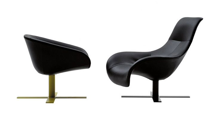 由于一项加热成形皮革生产技术,经过实验以及调研,我们推出了马特椅。它有两种类型的座位可供选择:一个较小的款型和较大的款型。这两种款型的版本都提供一个可旋转圆盘状铝基。面料可选黑色纤维织物或浸漆皮革。还有一种类型的脚架是十字形的。脚架镀明亮的铬抑或黑色涂漆不锈钢。它们都配有脚轮,可转动,并配以舒适的坐垫,坐垫为热成形皮革或者纤维面料。