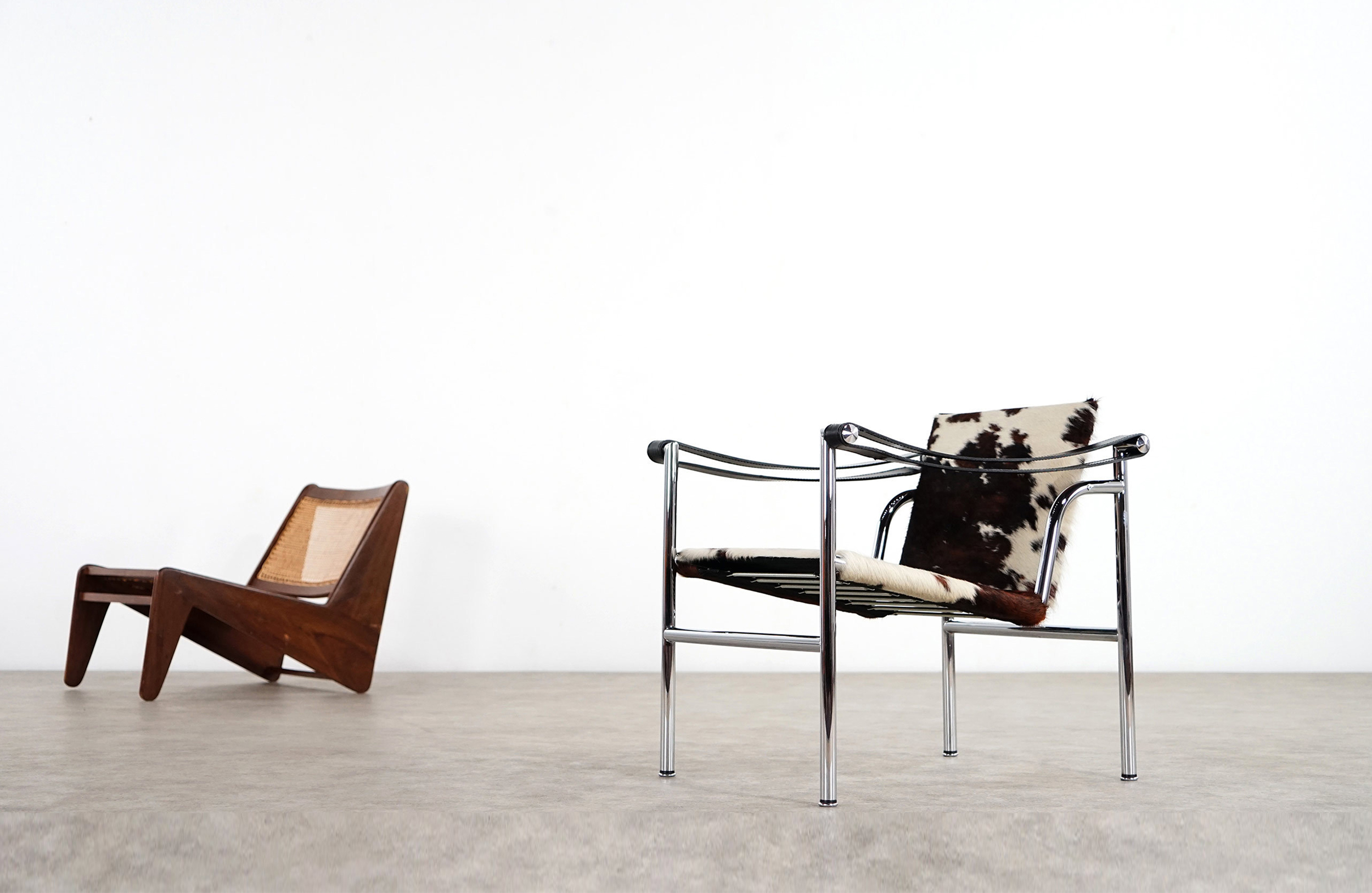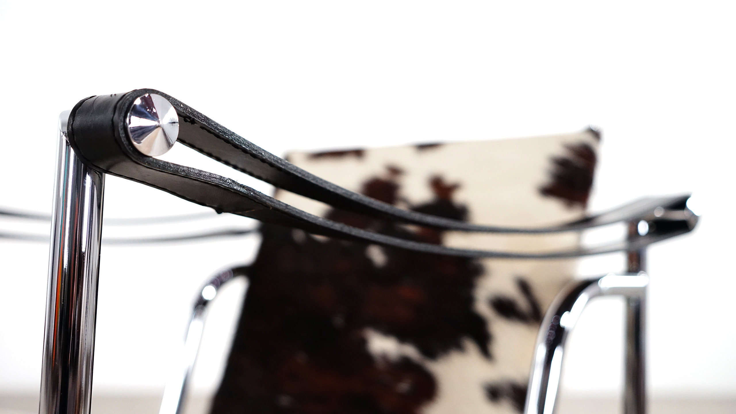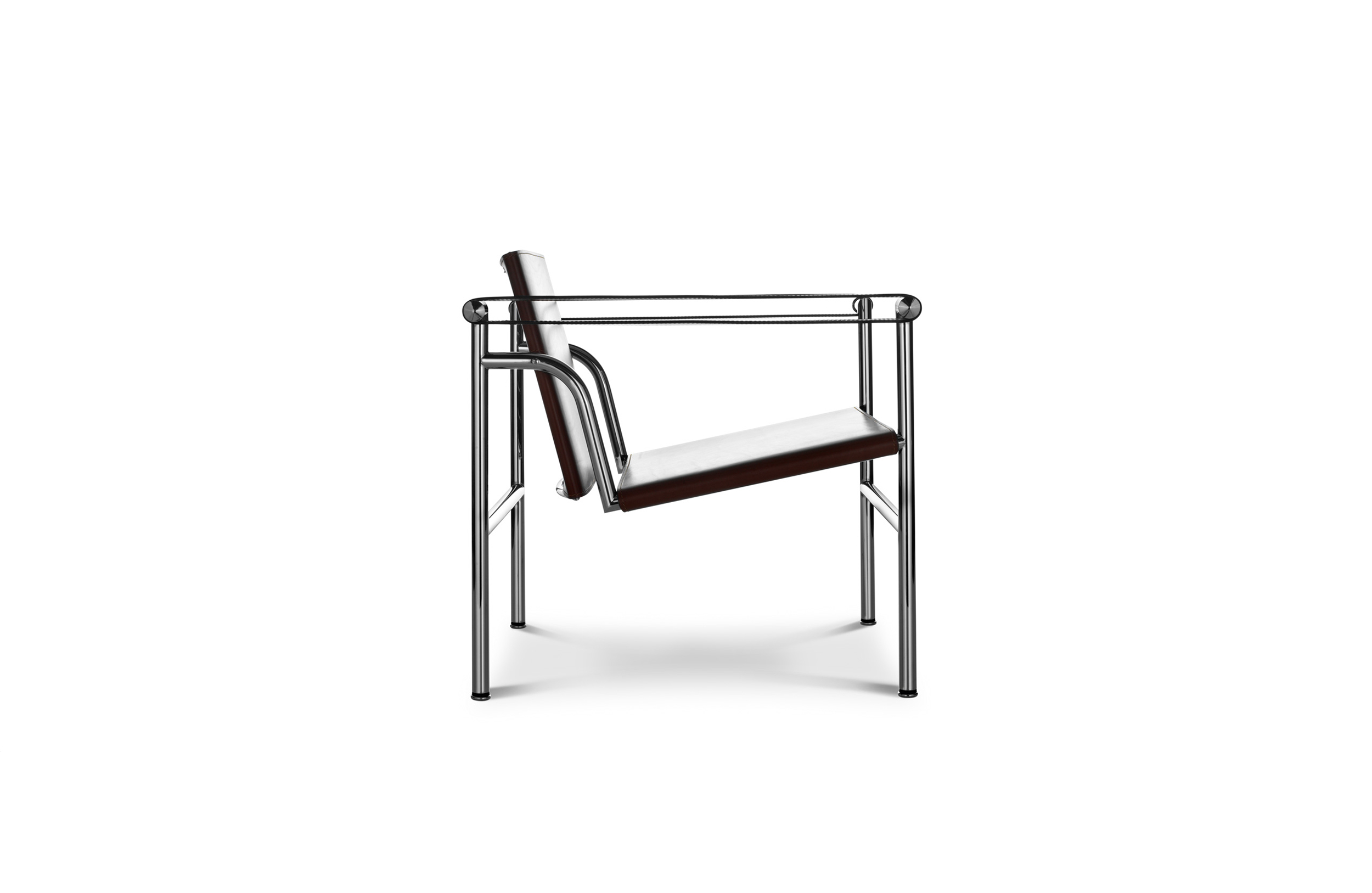 1928年诞生的LC1一款扶手椅Ville-d’Avray,采用环保的CR3三价镀铬钢结构。由建筑设计师设计,采用聚氨酯软垫座面和靠背,可提供更好的舒适性。扶手椅前面较宽,向后逐渐收窄。蓝缎饰面;扶手前端带有灰色皮革镶边。这款扶手椅是1928年专为Villa Church à Ville-d’Avray设计的,坐垫和靠背的填充满足客户的最舒适要求。1928年还为收藏家Raoul La Roche的艺术馆创造了一款类似的填充模型。这些原型用于更精确地定义1929秋季沙龙模型的结构。