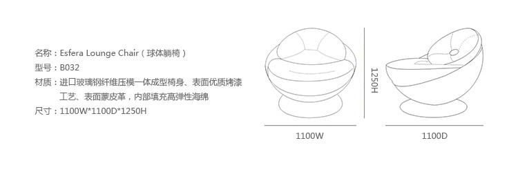 Ricardo Fasanello设计的Esfera Lounge Chair(球体躺椅)像个裂开的坚果,裸露其非常温暖、 柔软、 不可抗拒的中心,这把不寻常的扶手椅,由巴西公司ETel制作,有用坚硬的外壳以及柔软甜蜜的皮革内里。Esfera 扶手椅上设有一个半球形的圆顶,极目两个舒适的坐垫,以支持你身体喜欢的曲线姿势,从而实现最终的舒适度。除了它醒目的外观,这个由Ricardo Fasanello设计的时尚躺椅采用一系列丰富的色彩,像科涅克白兰地,茄子和法式咖啡气雾,它看起来还非常的可口。以它特别的造型来点缀您现代时尚的装饰,这把别致的扶手椅必将成为您家中抢手的座椅。