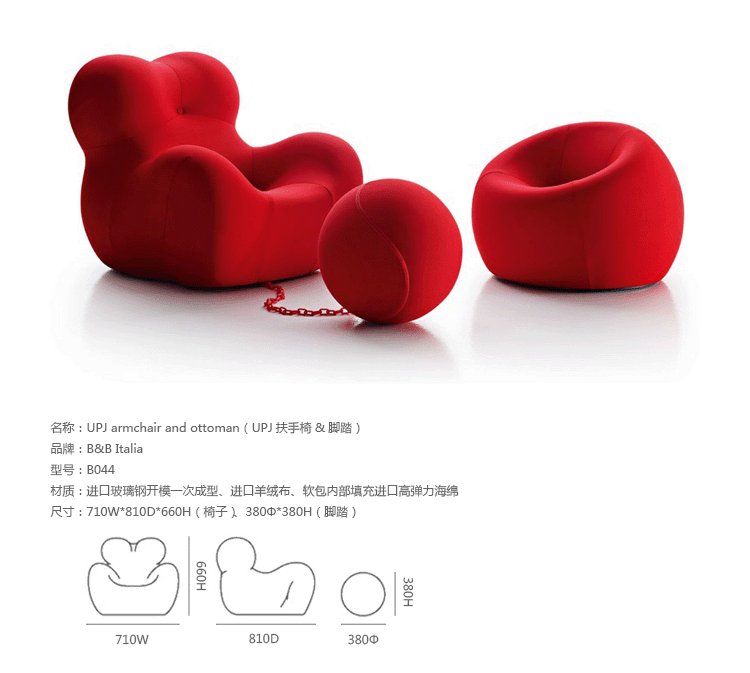 1969 年,意大利家居品牌 B&B Italia 发布了由世界著名设计师 Gaetano Pesce 设计的一系列包括7个单品聚氨酯泡沫椅子,其中就有日后在国际上大受好评的 UP5 。UP5 是一张扶手椅,它独特的结构和仿生设计灵感来源于女性的曲线,工艺上面的创新,和对当时社会对女性的性别歧视所作出的微妙诙谐的抨击,使它称为一件别具一格的作品,并被认为是意大利设计的经典作品之一。2014年, UP 系列椅子迎来了一个新的款式: UPJ ,「 J 」代表「 Junior 」,意即少年。可想而知, UPJ 是专门针对儿童的一款扶手椅, 不过,如果你以为有什么大的变革那就大错特错咯。其实,UPJ 和早期的 UP5 在造型上并没有什么变化,只不过缩小了尺寸。但是,当你看到可爱的小朋友和小伙伴们在一起愉快的玩耍和一些温馨的亲子互动后,也许你又会想,这又有何不可呢?
