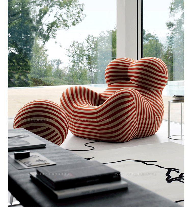 1969 年,意大利家居品牌 B&B Italia 发布了由世界著名设计师 Gaetano Pesce 设计的一系列包括7个单品聚氨酯泡沫椅子,其中就有日后在国际上大受好评的 UP5 。UP5 是一张扶手椅,它独特的结构和仿生设计灵感来源于女性的曲线,工艺上面的创新,和对当时社会对女性的性别歧视所作出的微妙诙谐的抨击,使它称为一件别具一格的作品,并被认为是意大利设计的经典作品之一。2014年, UP 系列椅子迎来了一个新的款式: UPJ ,「 J 」代表「 Junior 」,意即少年。可想而知, UPJ 是专门针对儿童的一款扶手椅, 不过,如果你以为有什么大的变革那就大错特错咯。其实,UPJ 和早期的 UP5 在造型上并没有什么变化,只不过缩小了尺寸。但是,当你看到可爱的小朋友和小伙伴们在一起愉快的玩耍和一些温馨的亲子互动后,也许你又会想,这又有何不可呢?