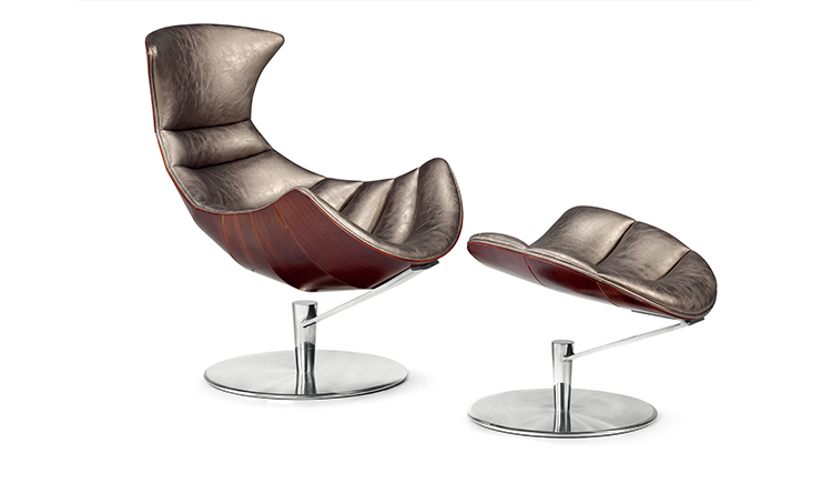 丹麦著名设计师Oluf Lund & Eva Paarmann设计的这款龙虾系列包含,Lobster Chair(龙虾椅)、Lobster Ottoman(龙虾脚踏)及组合搭配Lobster Chair and Ottoman(龙虾椅&脚踏)。此款椅子造型就像一只龙虾,采用优质夹板压模贴木皮而成、进口头层牛皮、内部填充高密度海棉、优质不锈钢脚架制成,简约立体的流线融入符合人体工学及空气动力学的结构设计,摆脱传统办公椅单调冷硬的刻板印象,达到舒适久坐的基本需求。