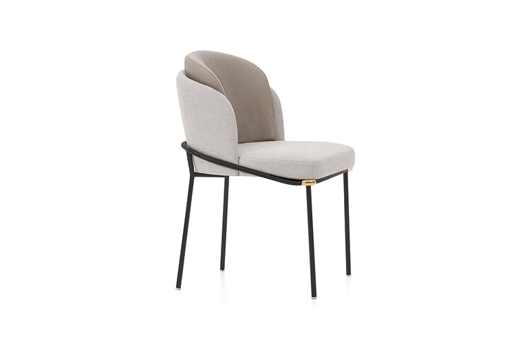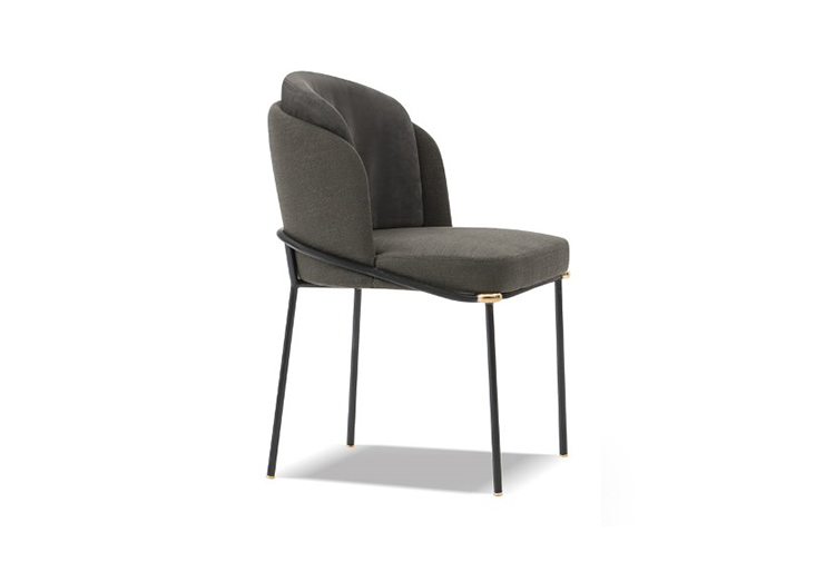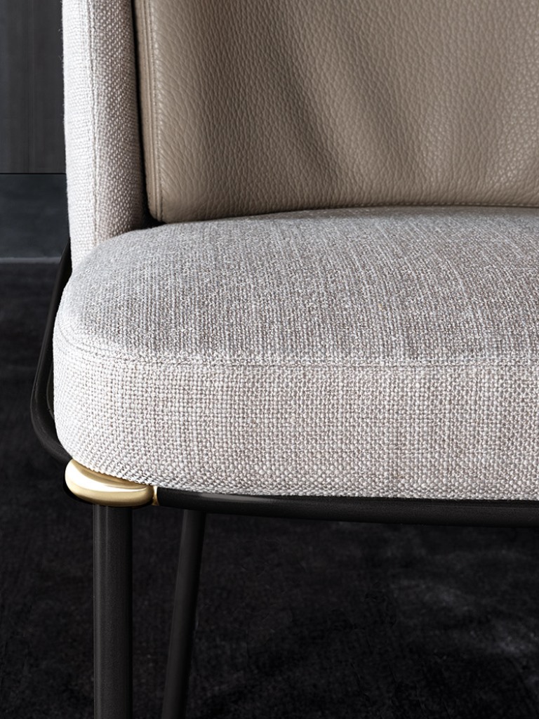软垫座椅搭配优雅修长的椅腿,其材质为亚光黑色的金属管,亮光金色、黑镍金属色或浅铜色的细节使其倍显精致。