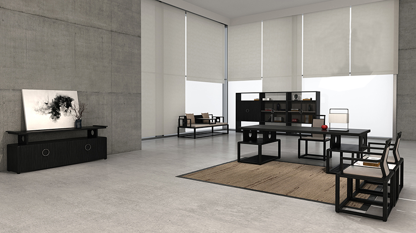 “书香门第”系列办公家具的设计源自对博大精深的中国文化的崇尚,是寄“东方诗语”之后中泰办公家具品牌推出的又一原创力作。以方与圆为主要设计元素,精致简约的造型特征,完美展现低调高雅的书香气质。首次创新性的将传统家具中的榻坐设计理念植入到现代办公室家具环境当中,运用现代美学思维缔造专属的私人办公形态。方与圆之间彰显低调与奢华,整个系列端庄、大气,凸显工作与生活的超然品质,在梦想与现实之间,品味书香门第系列家具的独特韵味。
