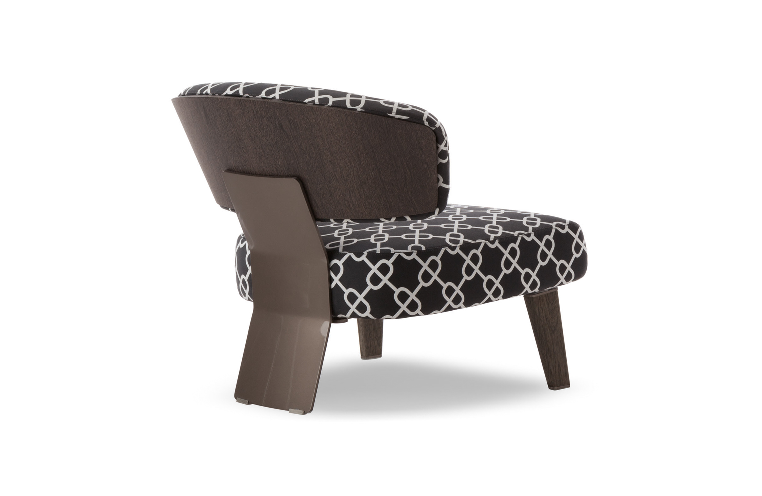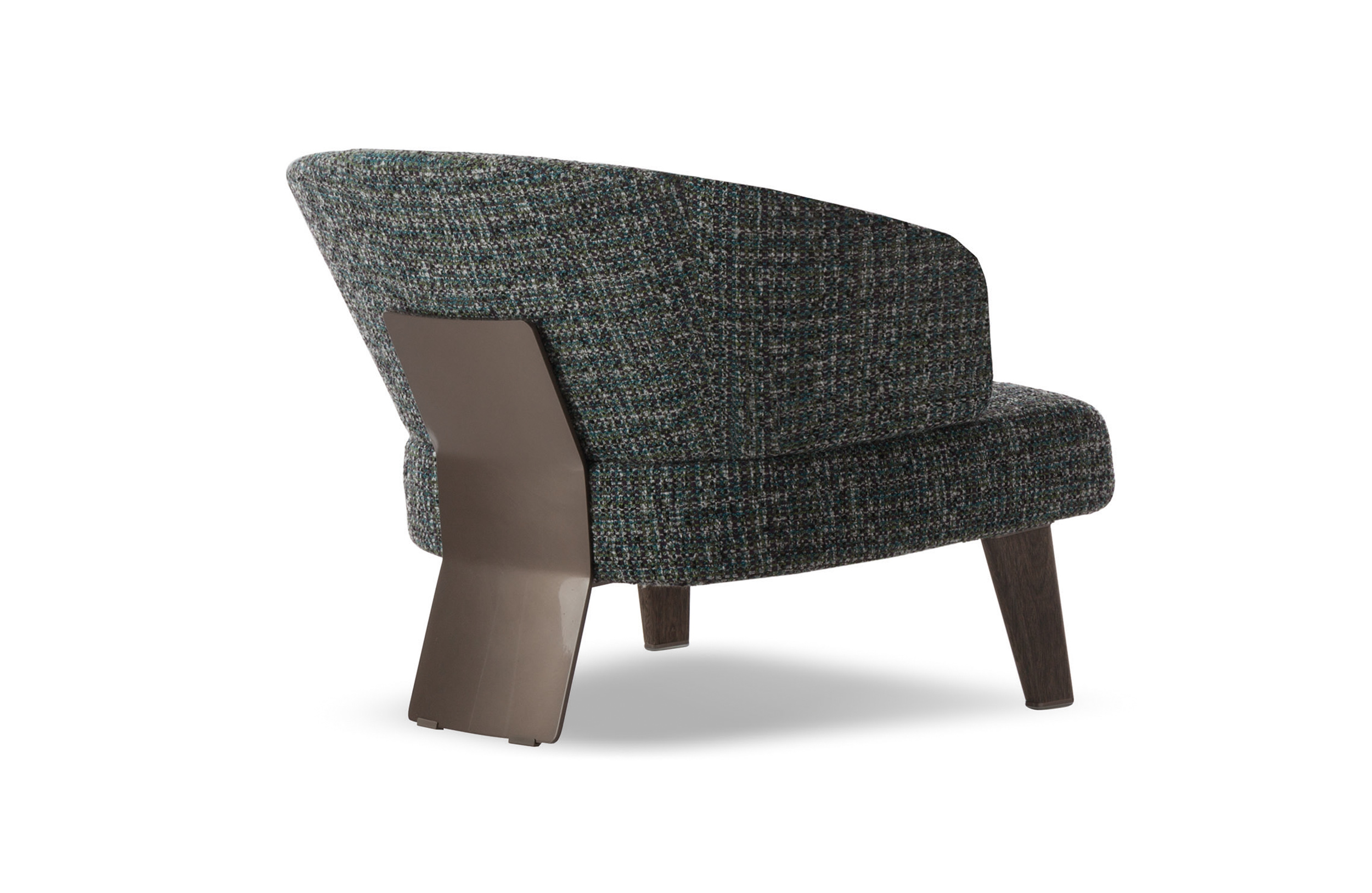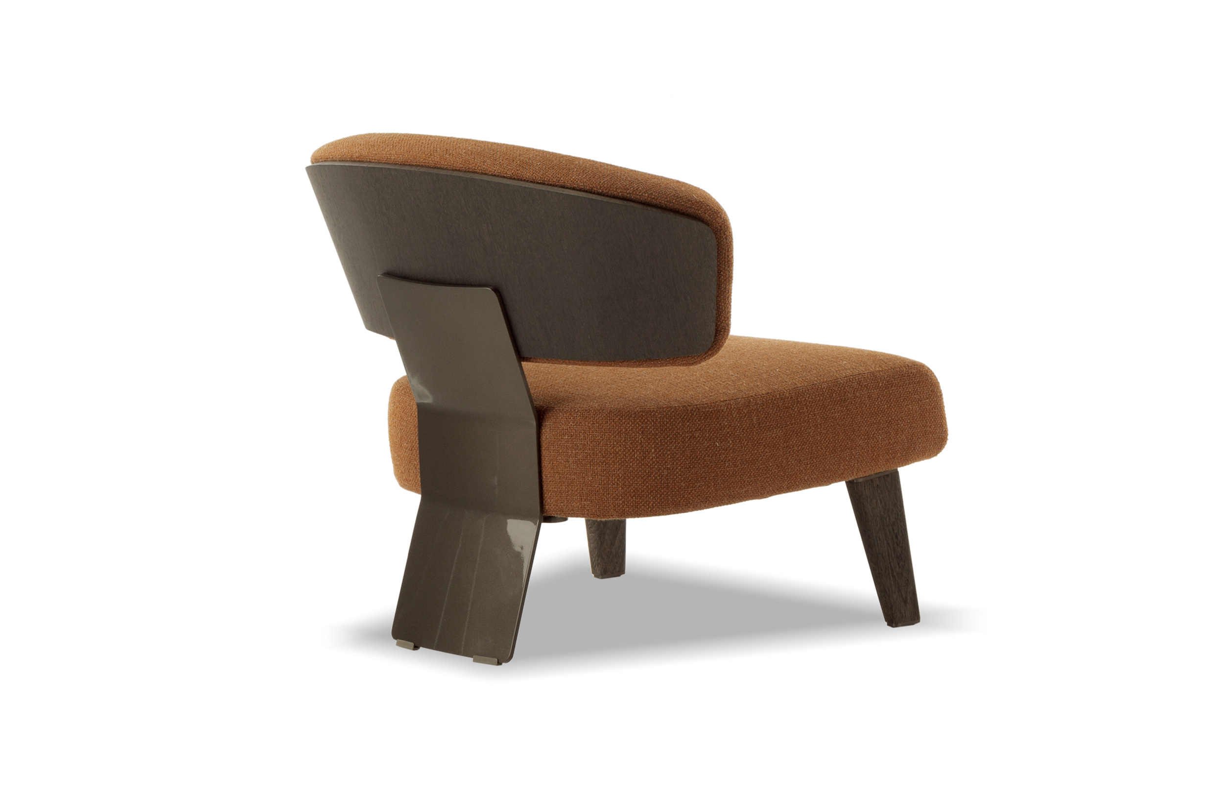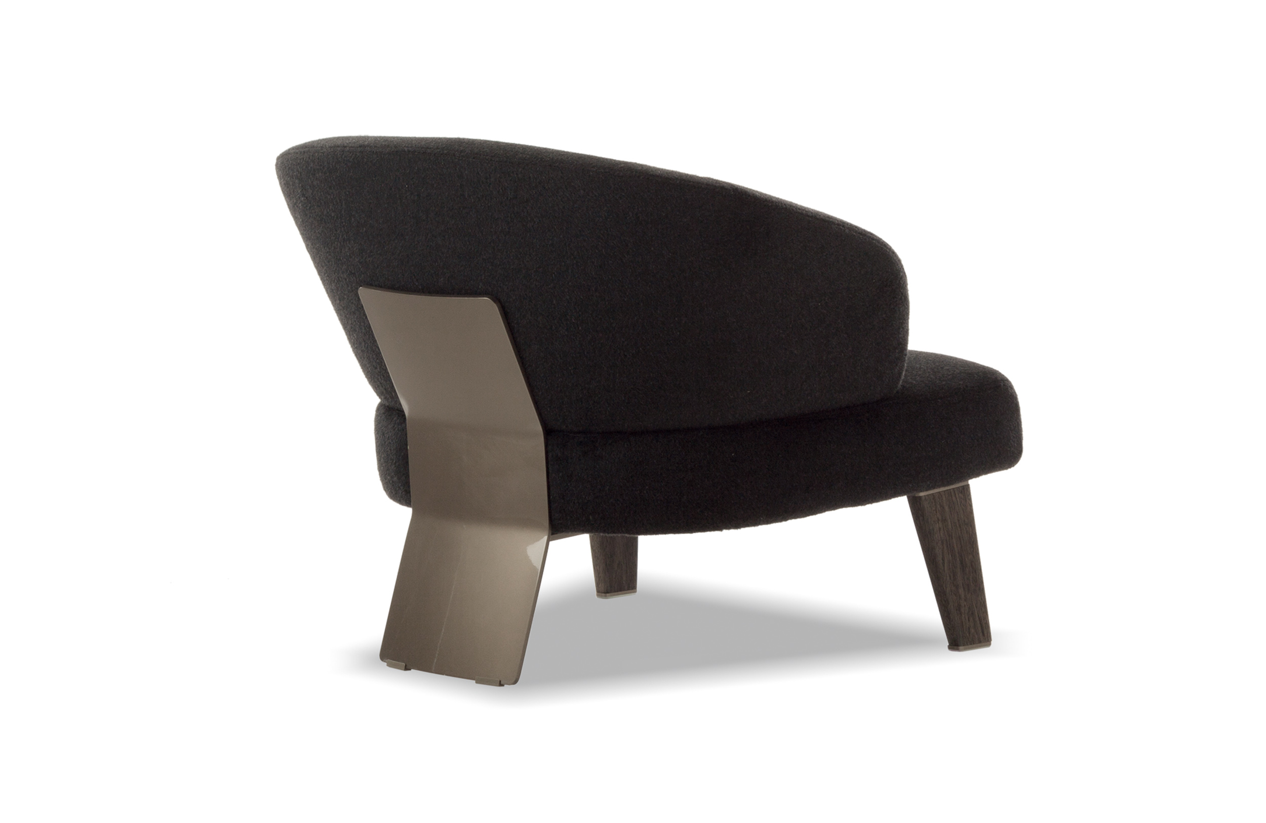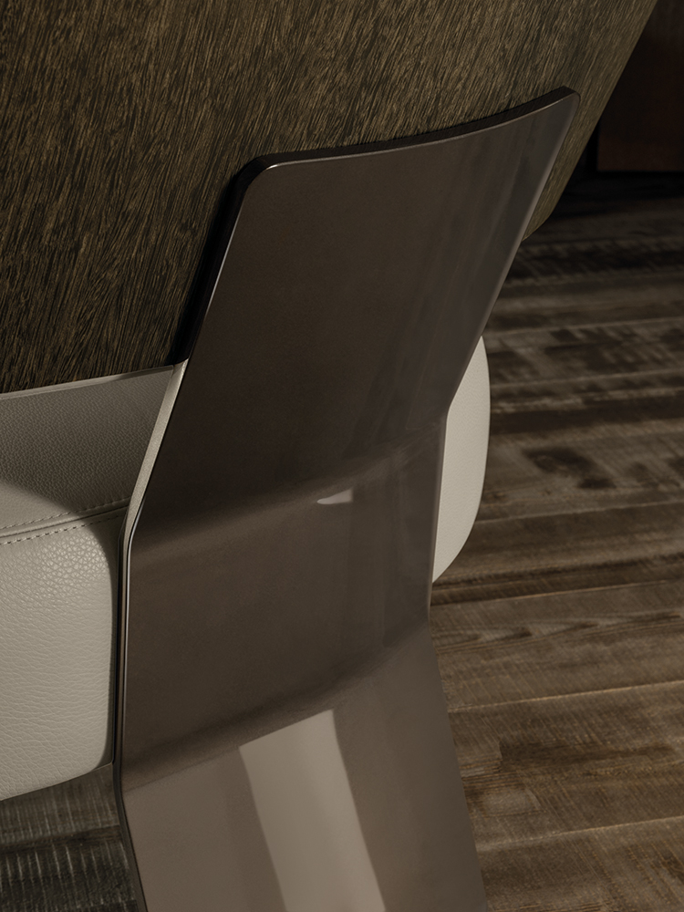 Creed “Lounge”沙发后方的地面支撑采用做工考究的弯曲金属架并搭配浅铜色亮光漆,前方支撑腿则为米灰色的鲍迪豆实木材质。支撑腿的上下方均采用精致的金属部件并搭配浅铜色亮面漆,用与众不同的细节设计来展现非同寻常的高超工艺。