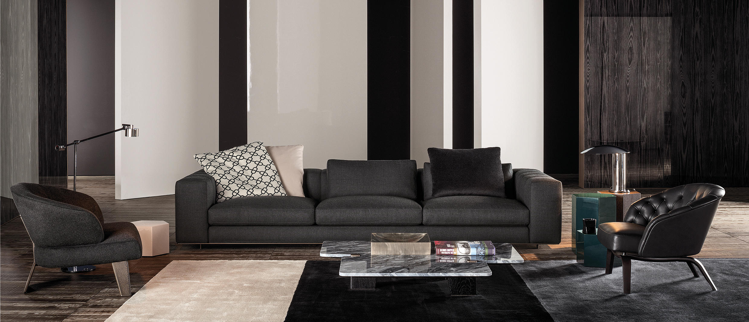 Creed沙发系列极具个性风格,搭配2016系列中的各类产品均能达到相得益彰的效果,尤其是与Bellagio “Lounge”桌搭配,两者的组合可以打造出别具一格的环境氛围。Creed家族成员包括多款沙发椅,每件产品在设计时都考虑到其摆放的精确位置,同时兼顾用途和风格的和谐统一。Creed系列产品的比例设计精益求精,因而不仅可以和谐地融入居住空间,还可以用在接待场所,如等候室、前台区域、行政办公室。饱满而又舒适的造型,精致的表面包覆,一丝不苟的细节,这些就是Creed “Lounge”沙发的特质所在,使其成为居住空间的主角。