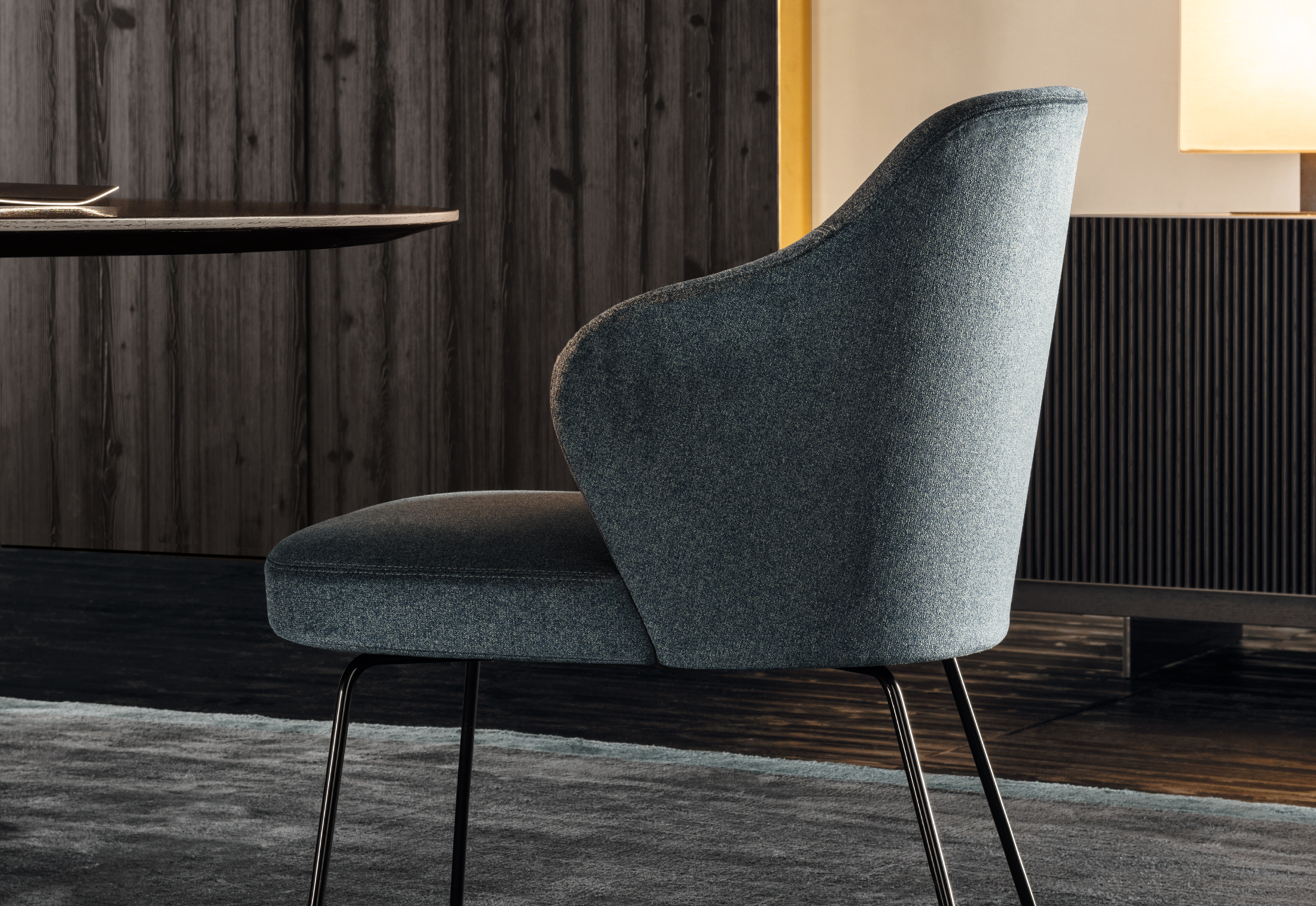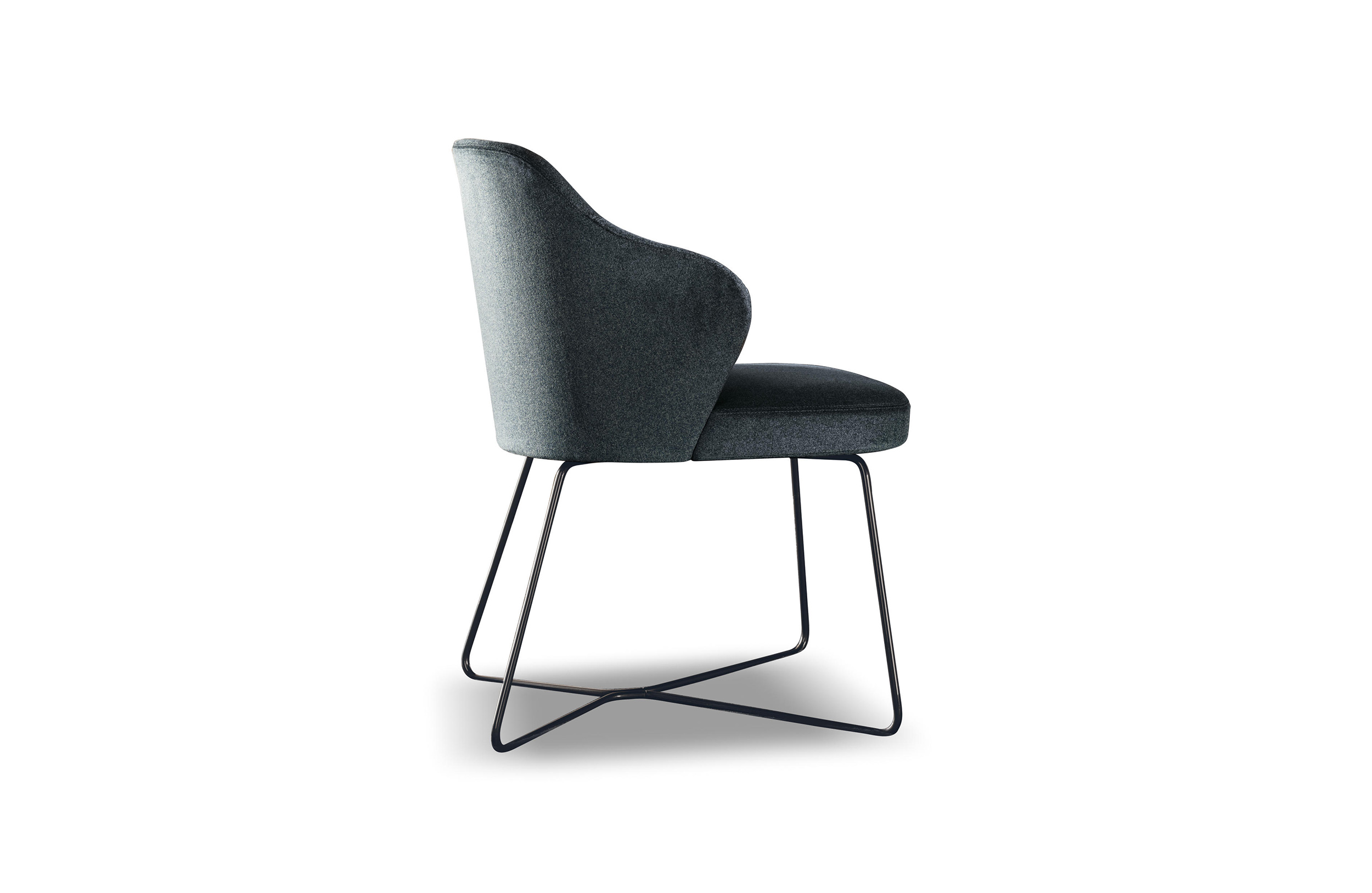 莱斯利“餐厅”小扶手椅展现出圆润而又迷人的造型和同名扶手椅的平衡比例。其特点在于冷模注塑而成的弧形靠背,搭配柔软的填充物。一丝不苟的覆面工艺打造完美的外观效果。Leslie “Dining”可以完全采用织布覆面或者皮革覆面,也可以选择混搭,靠背为织布覆面,坐垫则包覆皮革,体现两种材料之间的完美对比效果。Leslie “Dining” 小扶手椅有三种样式:Pewter色漆面的钢制固定基座,或是Pewter色漆面的压铸铝支撑腿。旋转式基座也采用Pewter色漆面的压铸铝支撑腿。