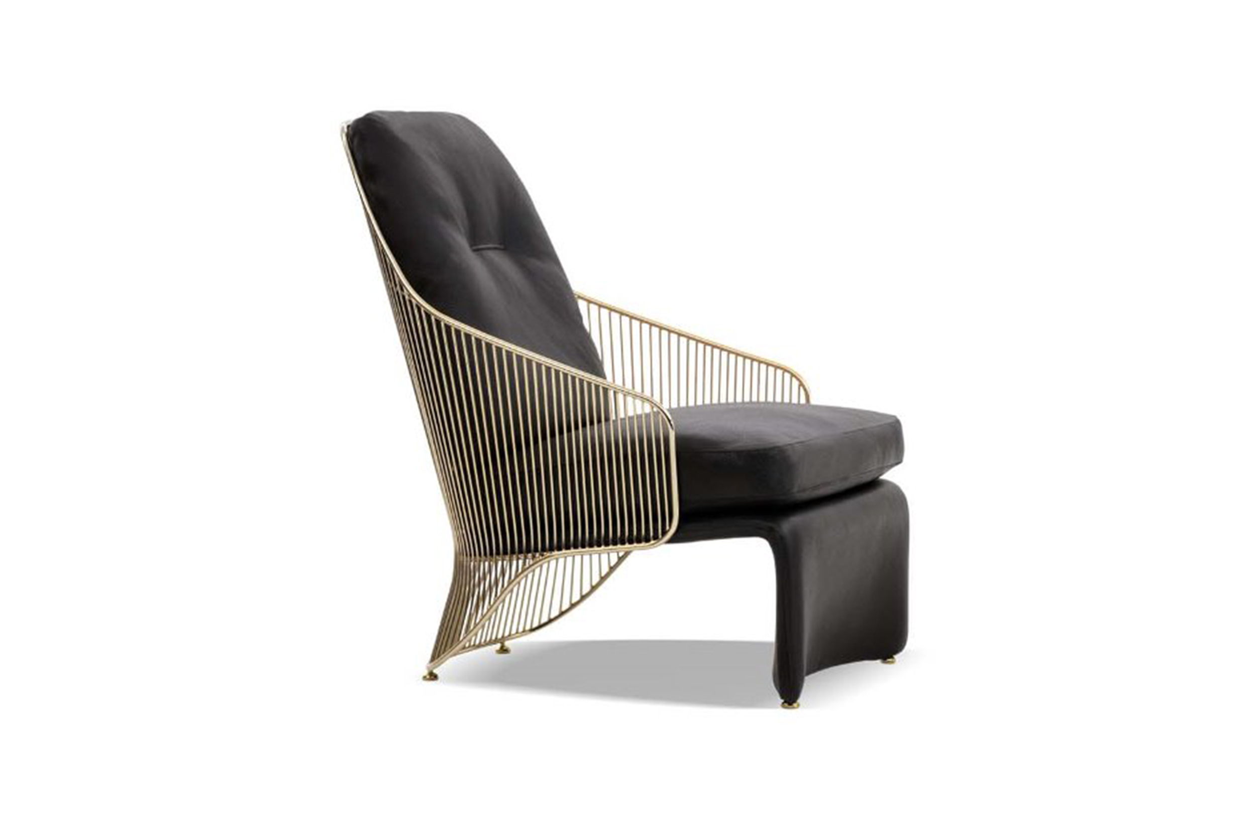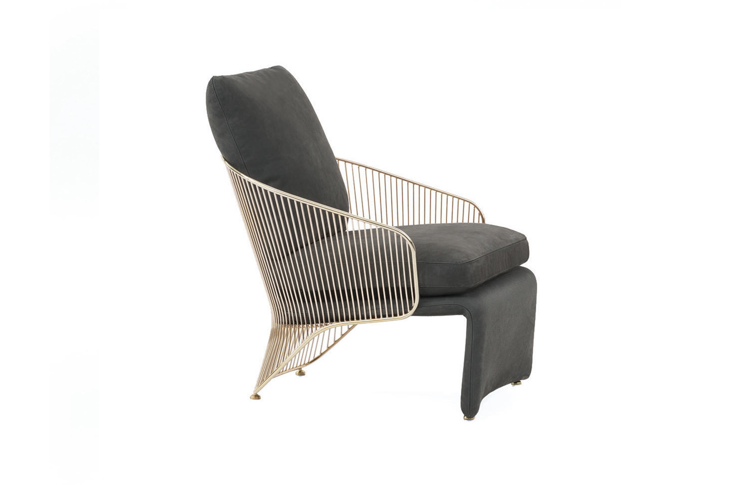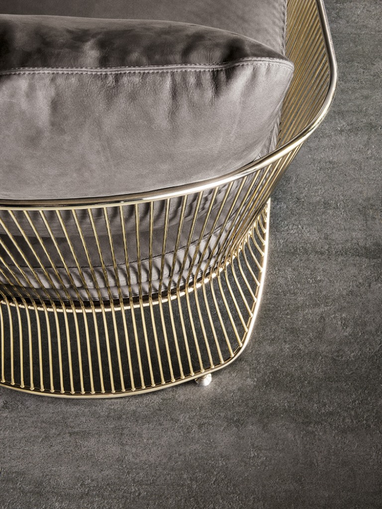 Colette扶手椅有两种高度和两种饰面可供选择:淡金色和黑镍金属色。
