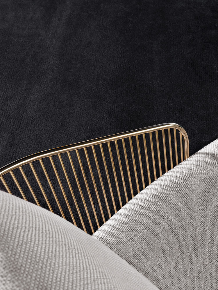 Colette扶手椅的制造过程相当复杂。外部的金属构架经过压延和装配,焊接点超过三百个。特殊的金属表面源于在淡金色的液池中进行电镀的工序以及透明的保护涂层,在此基础上拥有刚度和深度。座椅结构前方搭配地面支撑件,采用聚氨酯泡沫制成,内部插入金属件,绑带的设计使其具有一定的弹性,从而保证绝佳的舒适度。 坐垫和靠背完美搭配构架的设计。