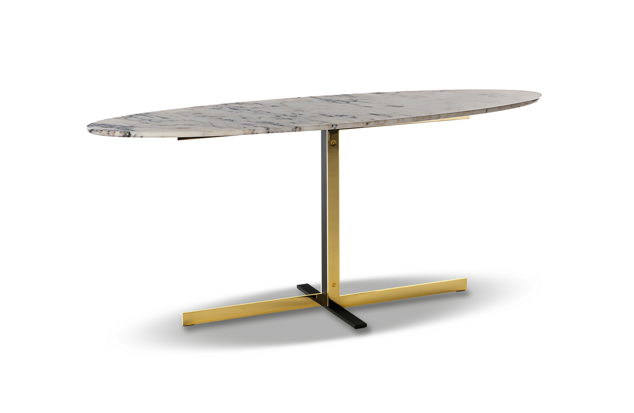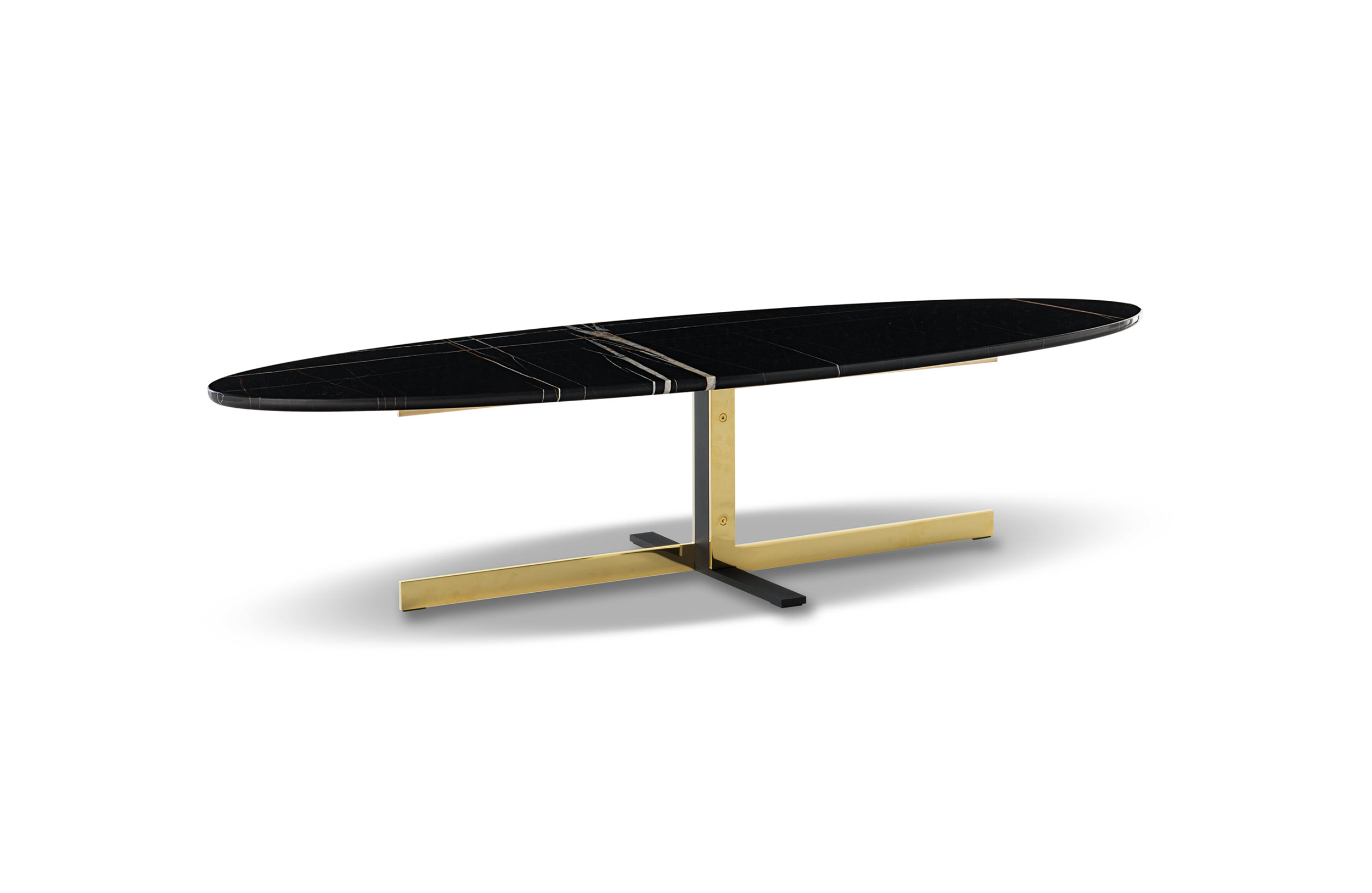 如果说Catlin边柜的设计崇尚简洁,那么材质的选择则旨在打造非凡的视觉和触觉效果。金属基座有着精致的十字形地面支撑腿,其中包括颇有趣味的组合:黑色压花搭配铬色或金色的抛光表面,打造出多种多样的风格。材料的搭配体现出非凡的优雅感,台面可以选择两种珍稀名贵的大理石,Arabescato Purple或Sahara Noir,两者都拥有抛光表面。