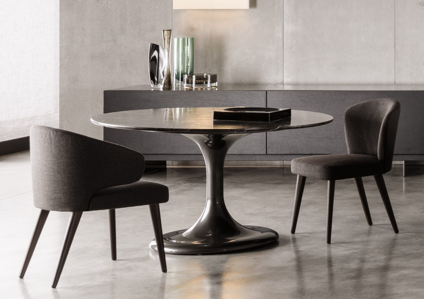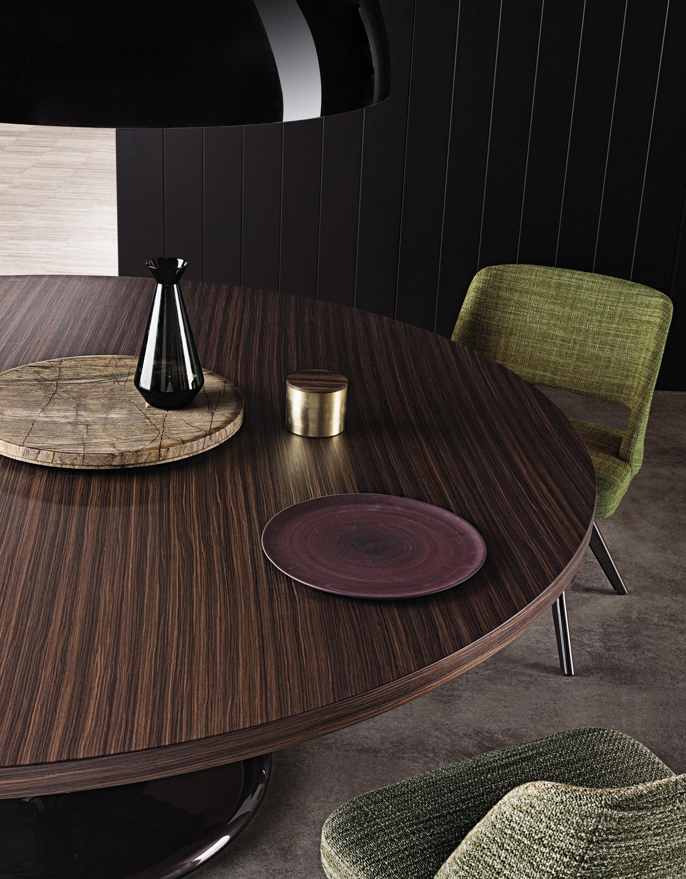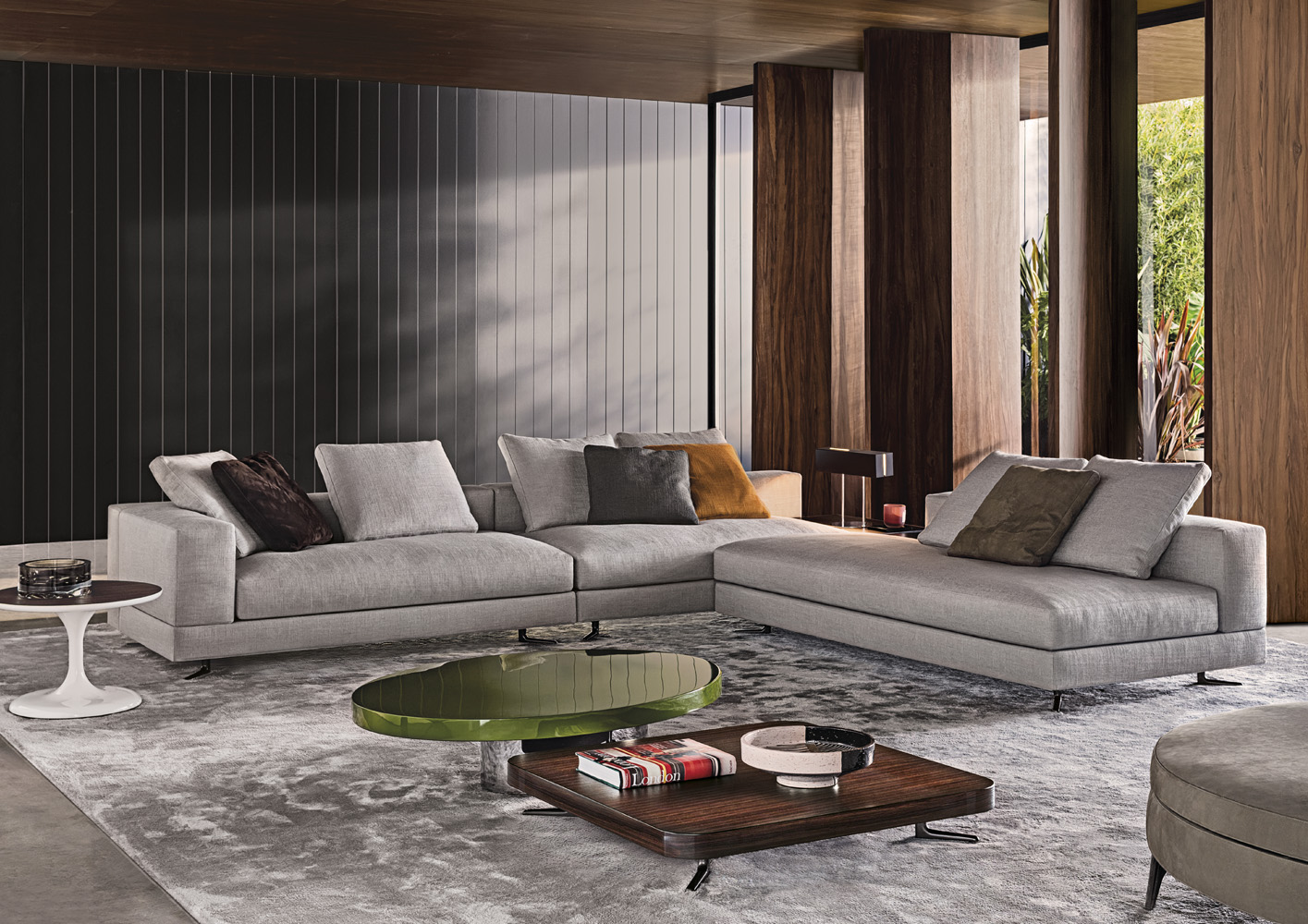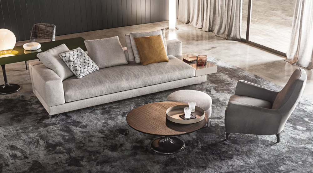 Neto是一组咖啡桌系列,有不同的高度可供选择,此外还有三种直径的台面以及三种不同的材料-颜色组合。如果基座和台面使用相同的颜色亮光漆(白色或Pewter色),以此来展现造型的纯粹感;另外,无论是基座为Pewter色,台面为Marron Damasco大理石的版本;还是基座为白色或Pewter色,台面为亚光漆面的花梨木的版本,两者都强调木材和石材这两种材质的珍贵性。“全白”版本则展现出Neto咖啡桌的可塑性。在亚光漆面的花梨木版本中,台面下方使用与聚氨酯基座相同的颜色,采用Minotti Studio的独家设计。技术与设计内涵在咖啡桌上展露无遗,体现出十足的个性,使其能够搭配系列中的任何沙发座椅。这款极具功能性的休闲凳属于Neto家族,基座材质为聚氨酯,漆面颜色为Pewter色,上方部件则添加填充物,包覆Minotti独家系列中的布料和皮革。Neto休闲凳是搭配LANE边几的理想之选,实际上,它也是一款万能单品,在任何环境中都能自如地展现魅力,与系列中的任何产品搭配都毫无违和感。