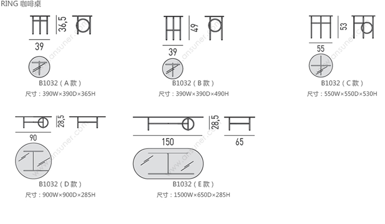 RING 咖啡桌 系列尺寸/示意图