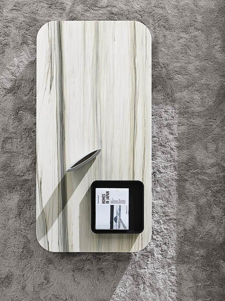 尽管桌面的比例很大,但由于高度的降低,桌子在生活空间中并没有侵入,而是作为一种赏心悦目的装饰性和功能性的岛屿元素。