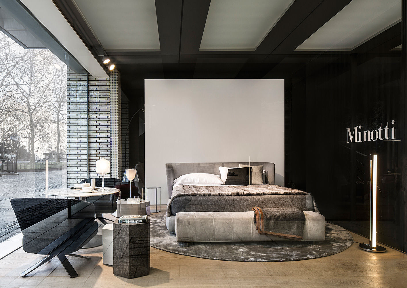 这一系列专为打造居住空间的实用元素而设计,布里斯莱边几具有独特的个性。基座和桌面是完全对称的六边形,这也是2016系列的主旋律之一,镀铬金属材质则突出其利落的个性。布里斯莱推出两个版本:一款是基座和桌面对应的六个角分别用细杆连接,另一款是由中心位置的镀铬金属杆连接基座和桌面。布里斯莱是一款多用途的边几,可以随心所欲地搭配Minotti产品系列中的所有沙发和扶手椅。
