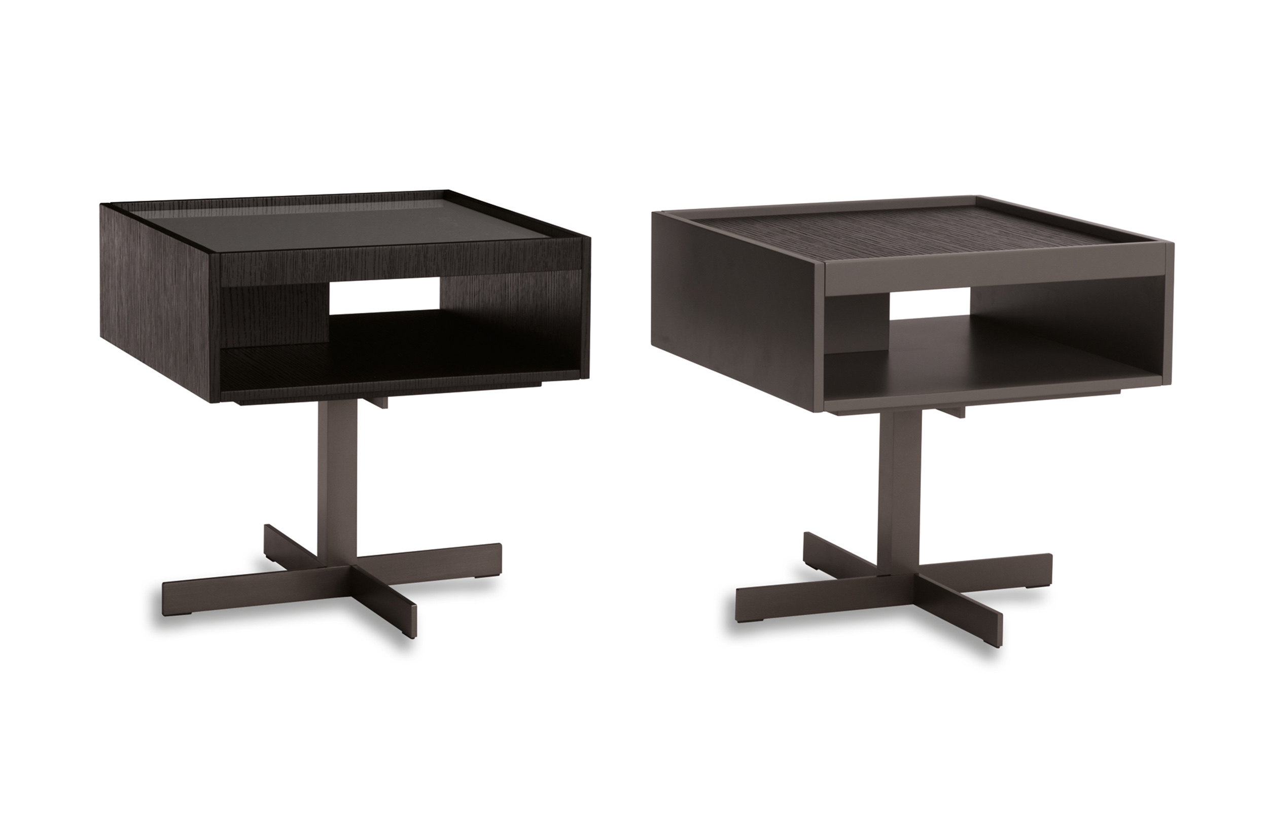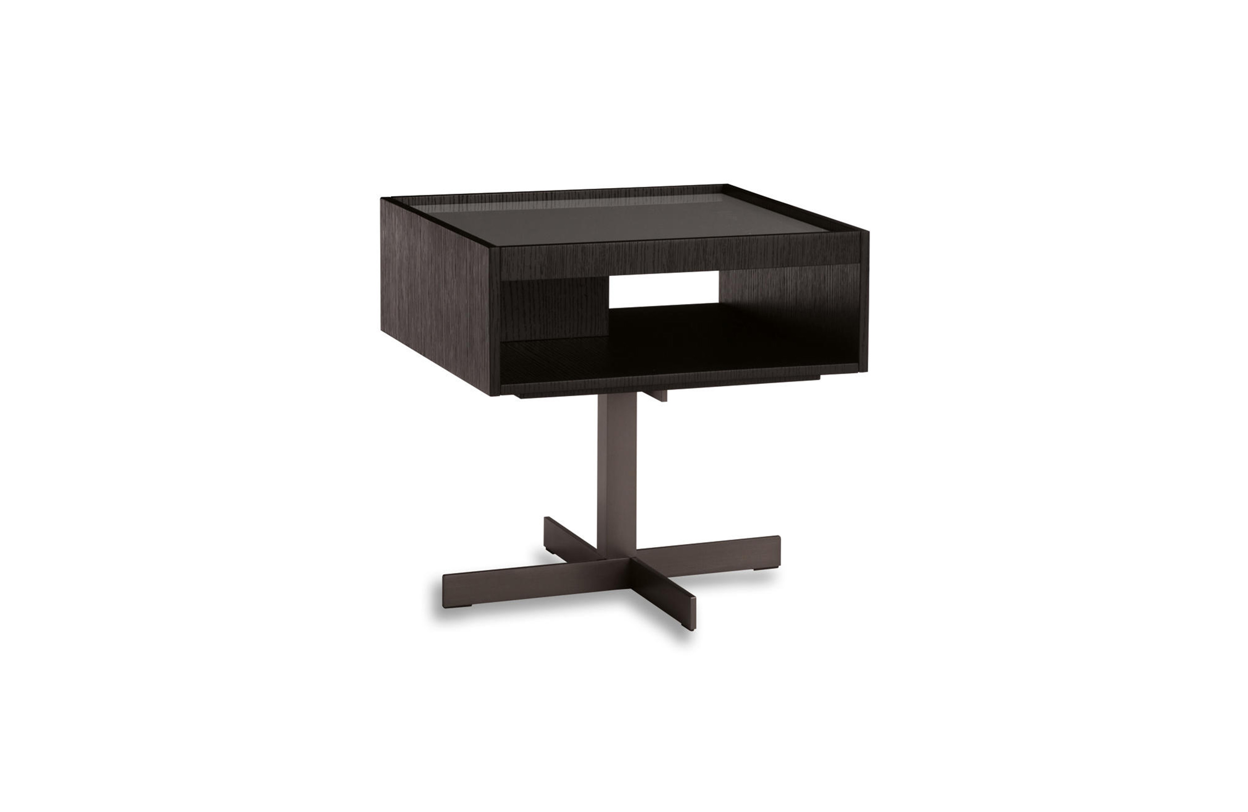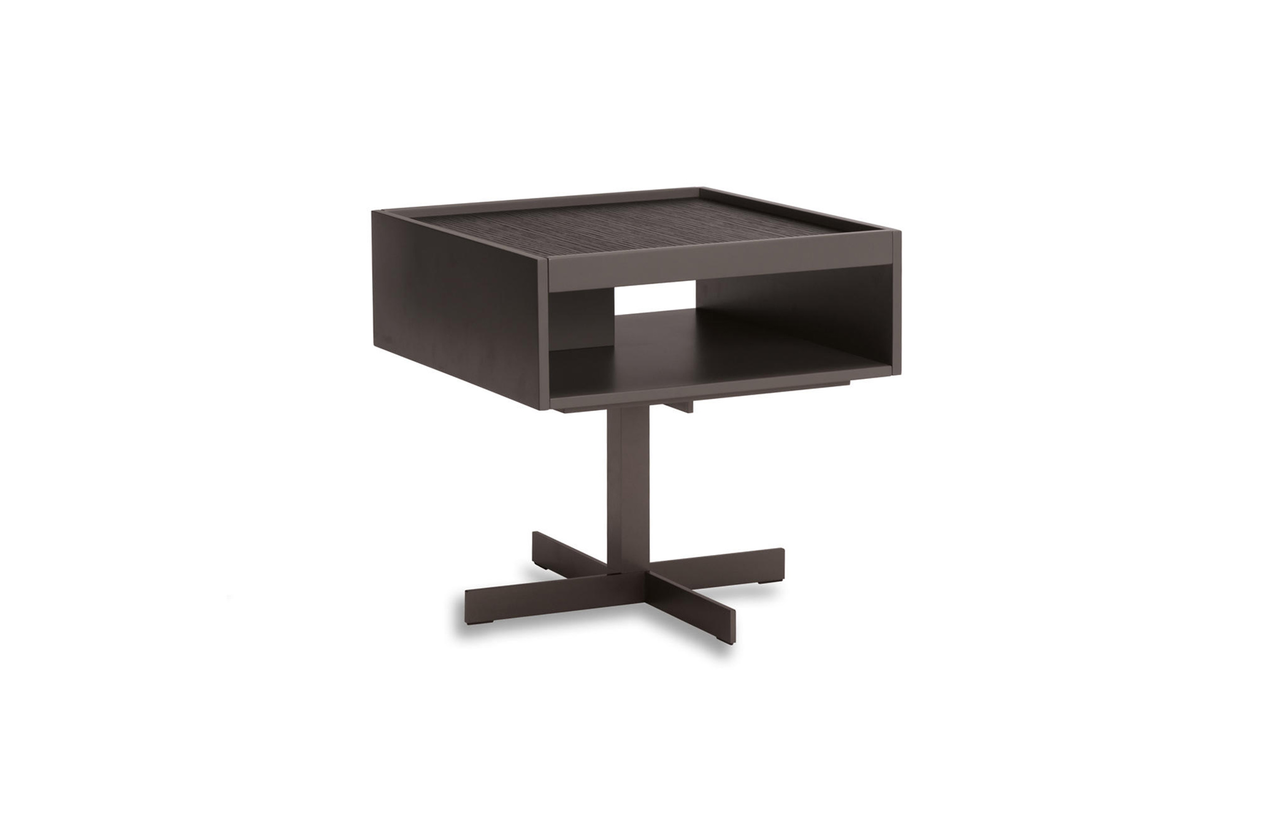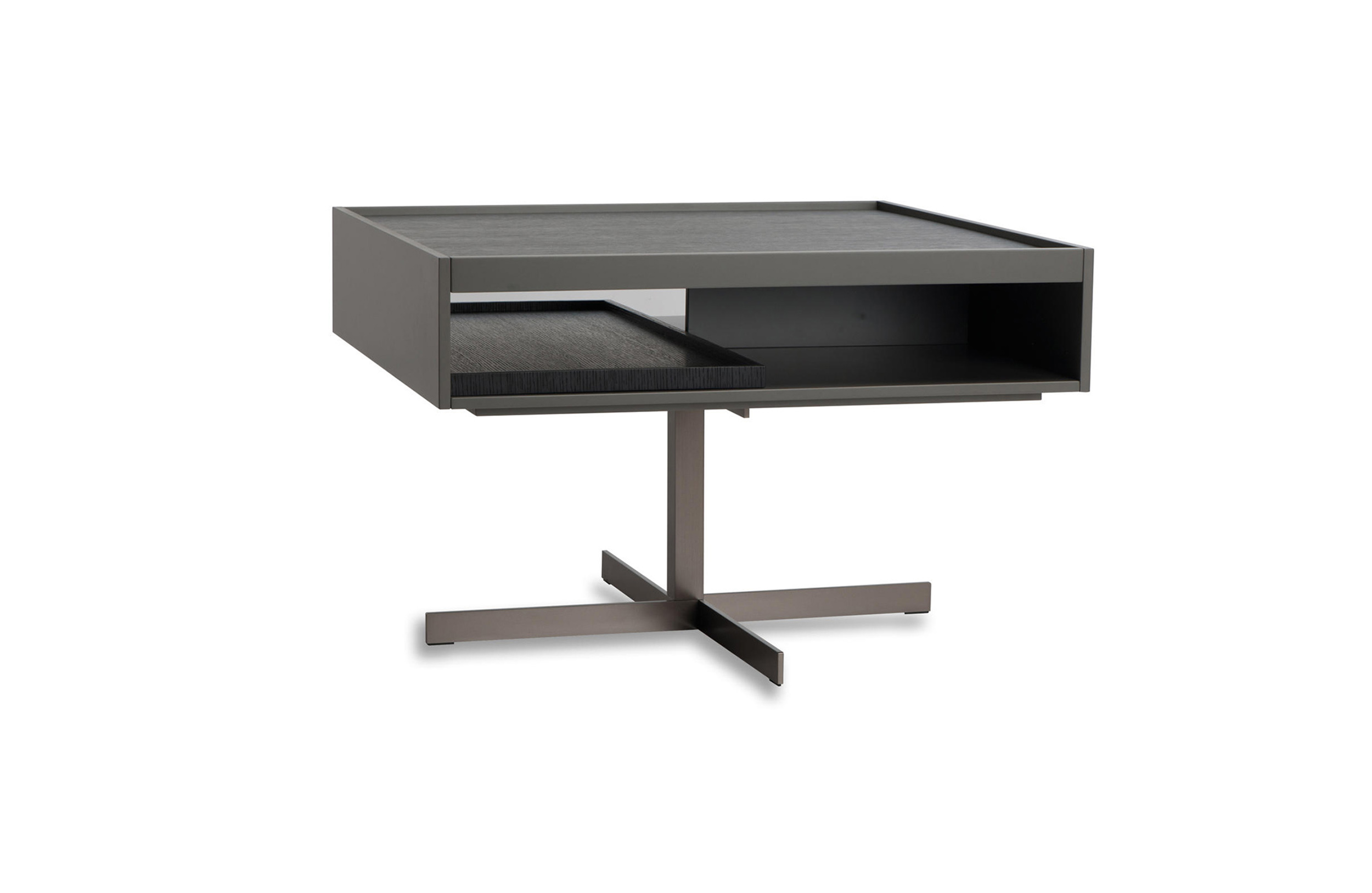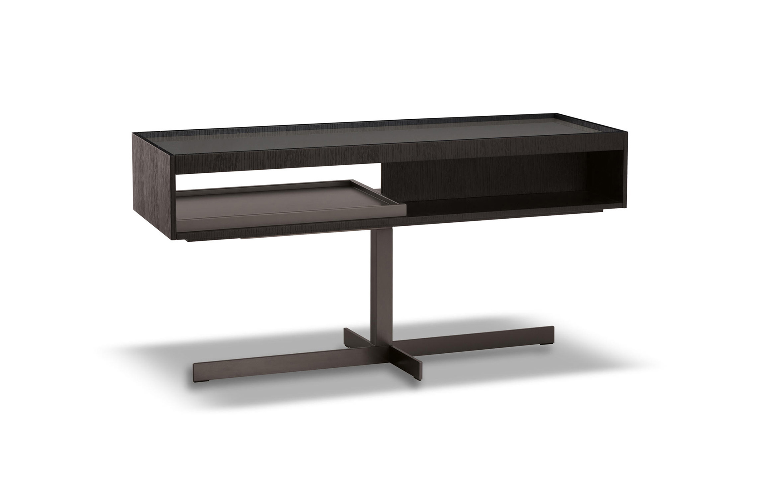 克洛塞边几特别为搭配Yang沙发系列而设计,拥有实用的置物表面和收纳空间。Close边几的理想位置可以是在靠背椅和Yang沙发之间,提供使用的置物表面:每件要用的物品近在咫尺,或是整齐地摆放在下方的收纳空间中,您可以在沙发上尽享放松时光。基座采用十字的简洁造型,采用金属制成,搭配亚光铜色表面。上方部分的置物空间采用前后皆可用的开放式设计,并且搭配一个可取下的托盘,有两个版本可供选择:一种是构架为Moka色漆面的开孔橡木,上方面板为粘土色亮光漆,内部的托盘为粘土色亚光漆;另一种是构架为粘土色亚光漆,上方面板和内部托盘为Moka色漆面的开孔橡木。除了不同尺寸的边几以外,Close系列还包括边柜、写字台和床头柜。