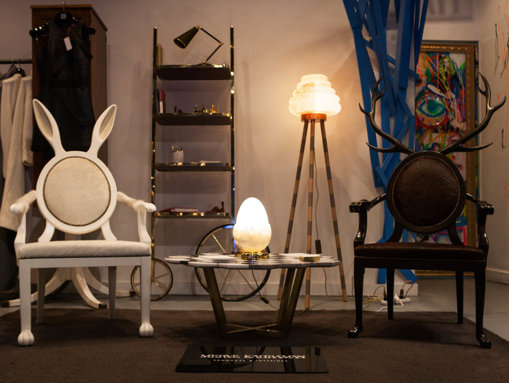 复视咖啡桌(Diplopia coffee table)是从创建一个传达视觉错觉的物体的想法中构思出来的。通过组合不同种类的大理岩产生立体效应。大理石桌面的不对称形式增加了复视的幻觉。复色的单色和彩色版本是用抛光或未抛光的铜腿制成的。更大的尺寸可根据要求提供。