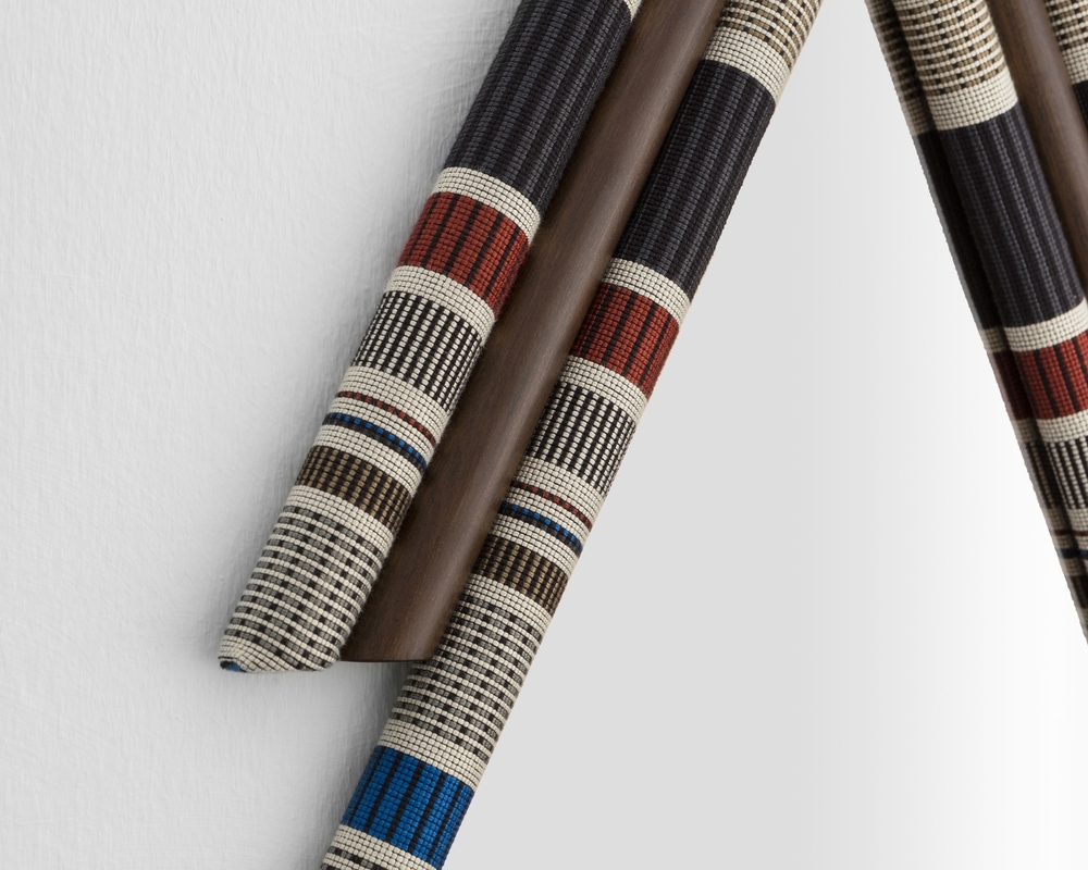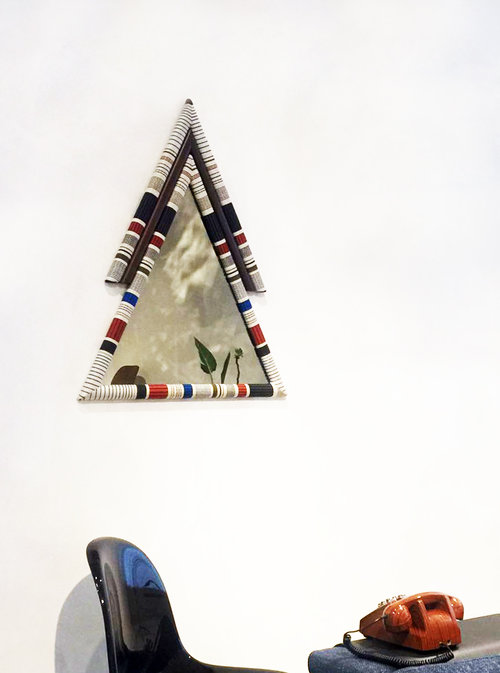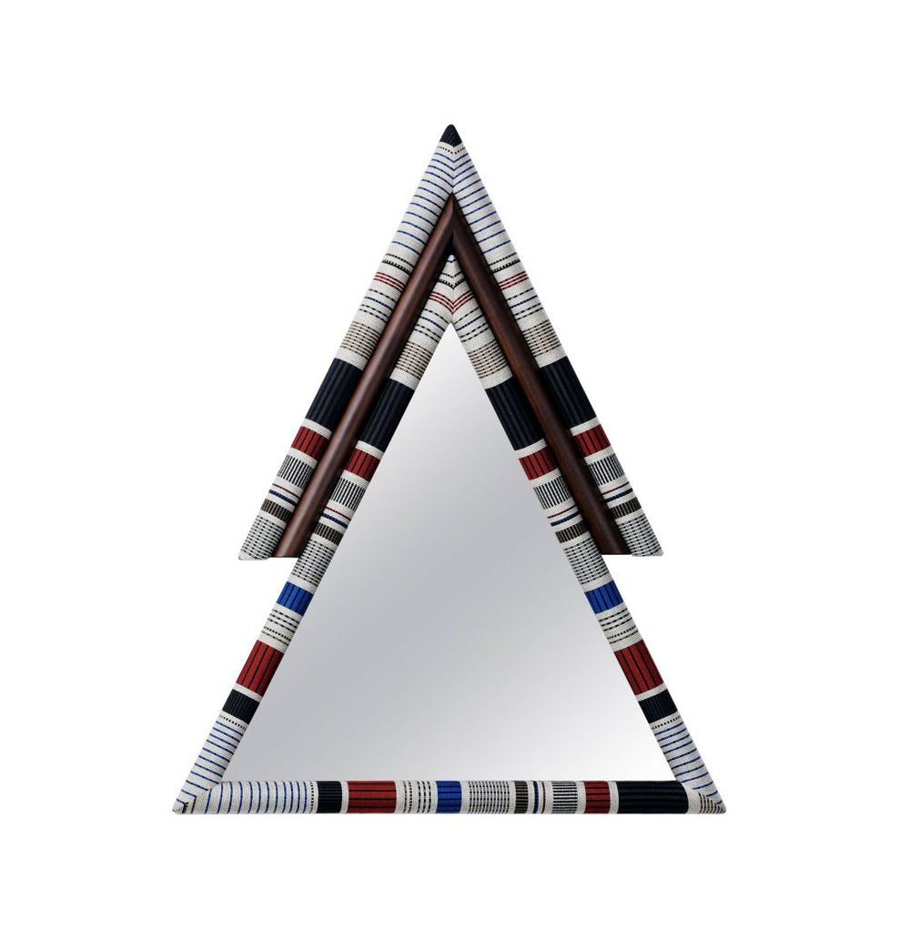 Pontiac(庞蒂亚克)镜受到美国印第安部落的启发。第一个版本有一个更男性化的基调,简单和强烈颜色和深色的木头结合了三角形的形状和灰色的镜子。保罗·史密斯设计的Kvadrat面料已被裁剪对称和手工制作的木材和泡沫。当地的印花和颜色组合与美国胡桃木相匹配