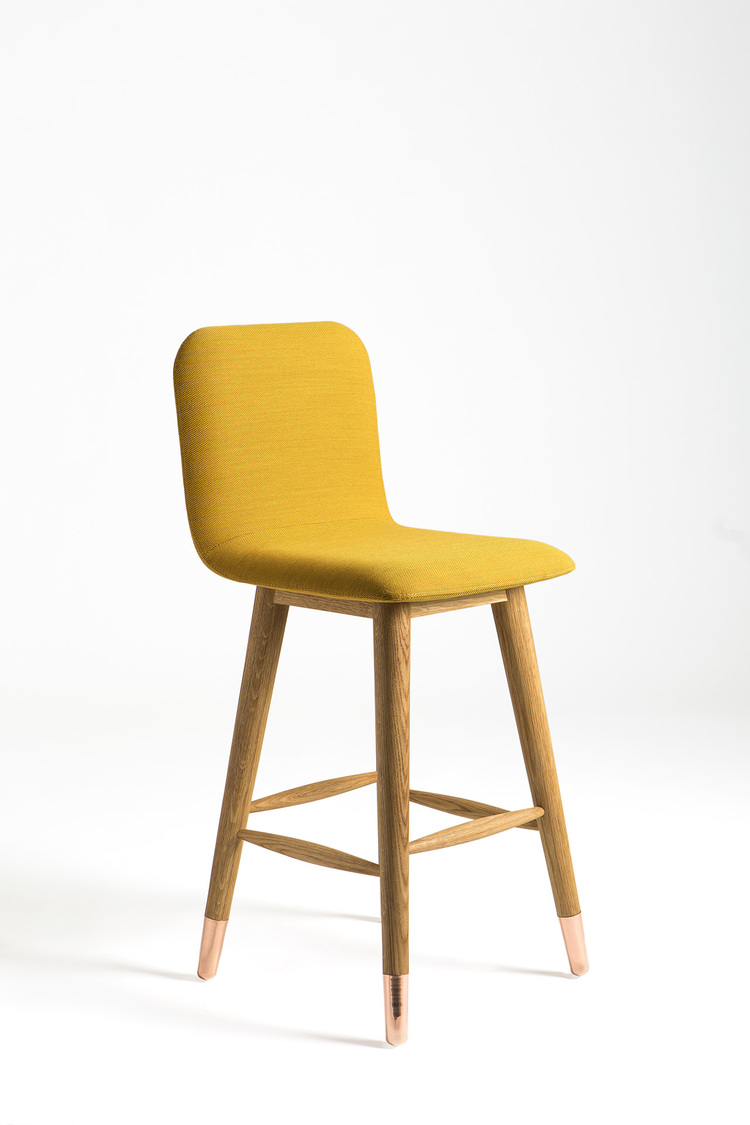 Mistral Bar Stool( 米斯特拉尔吧椅)旨在为其环境带来清新,现代,自然的风格。 抛光铜和白色美国橡木腿与彩色Kvadrat纺织品相结合。