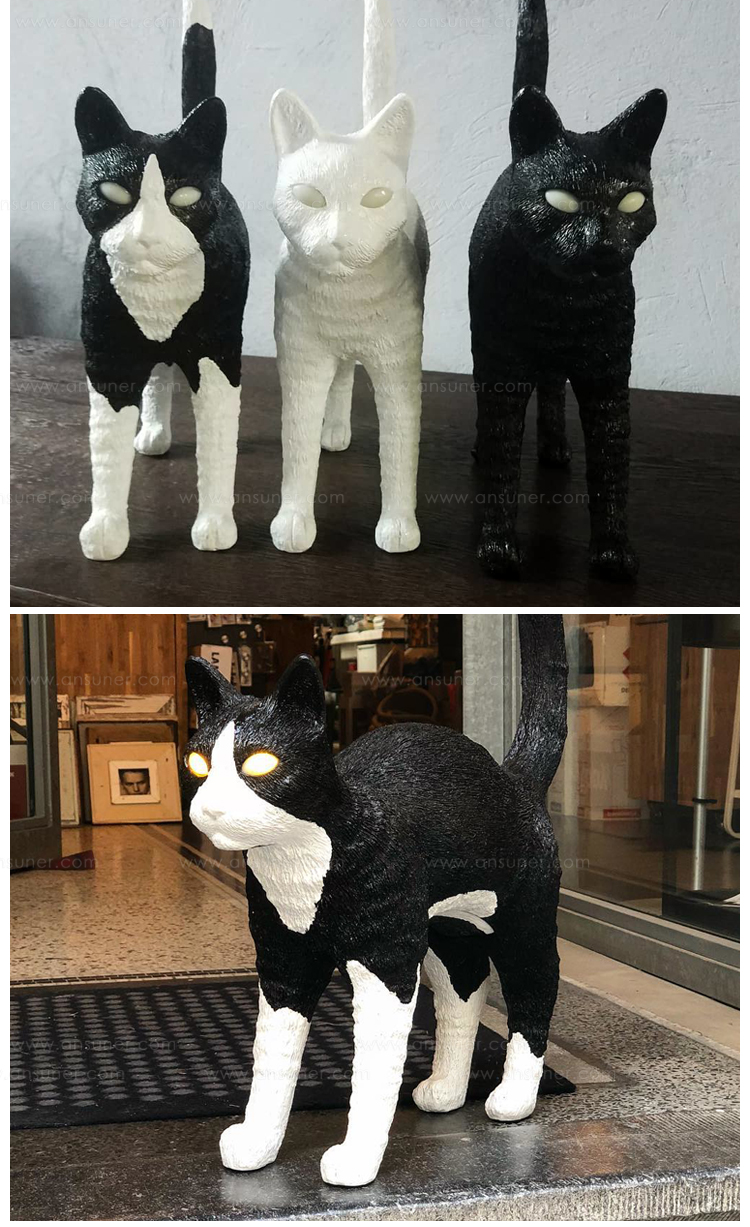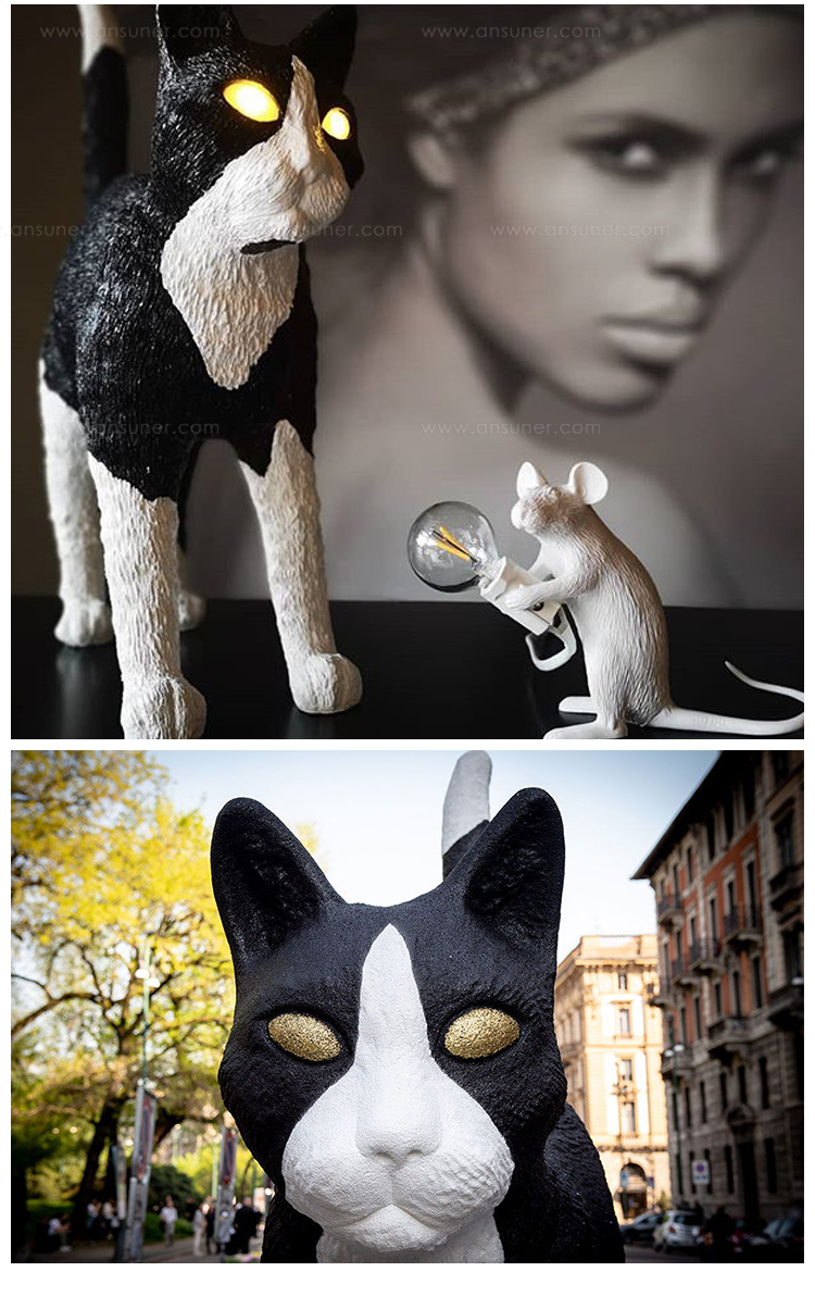 猫灯的设计,像一只穿梭于房间的猫科动物, 他的眼睛可以照亮你的房间,黄金颜色的按钮,作为他的开关.