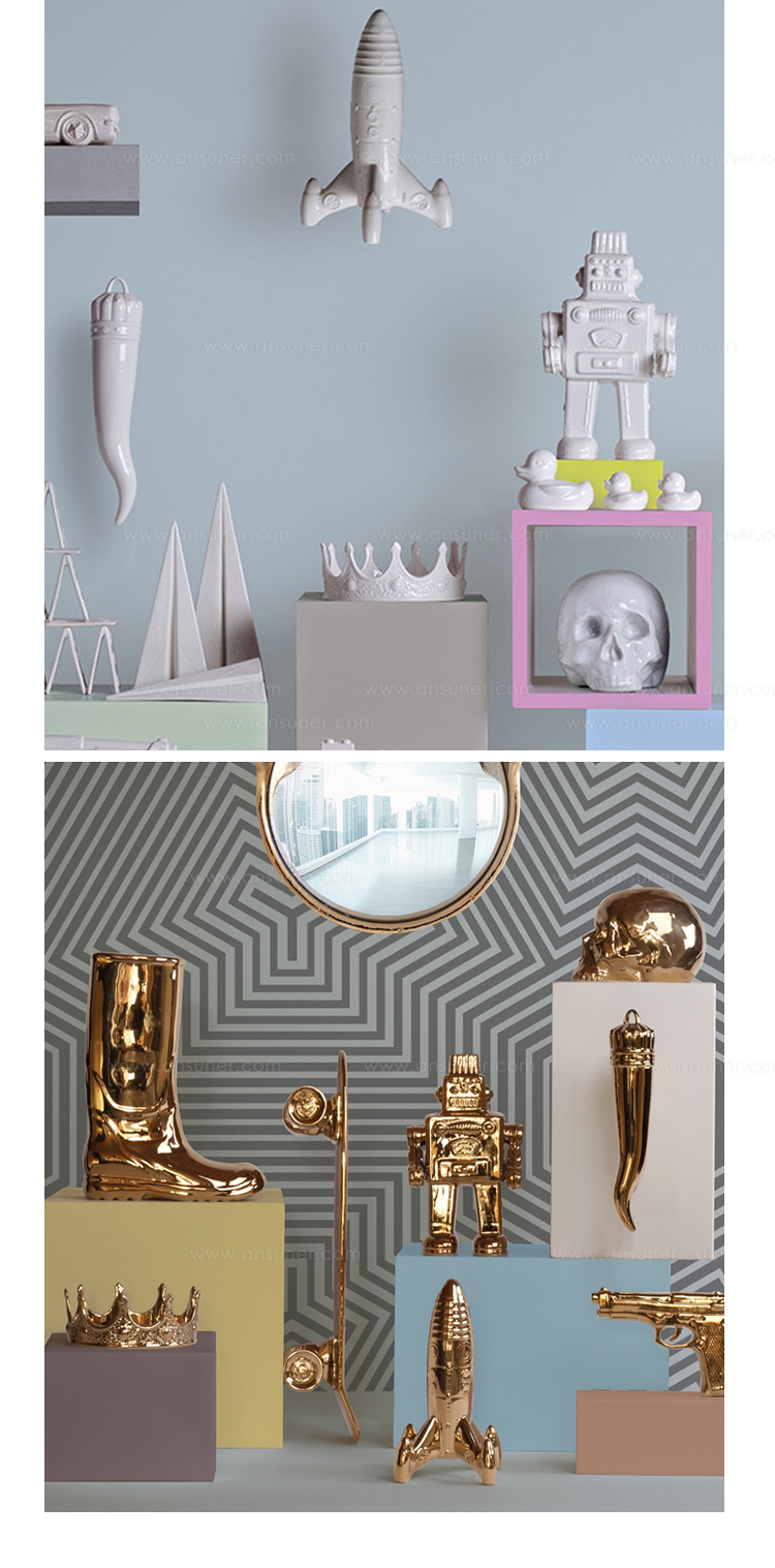 与Memorabilia系列一样,Memorabilia Gold是一系列独立装饰品,让人想起文化或历史事件,这也增加了兴趣点。 “我的滑板”实际上被设计用作食品拼盘,用于寿司或冷肉等食品,体现了Seletti对功能性艺术的热爱!