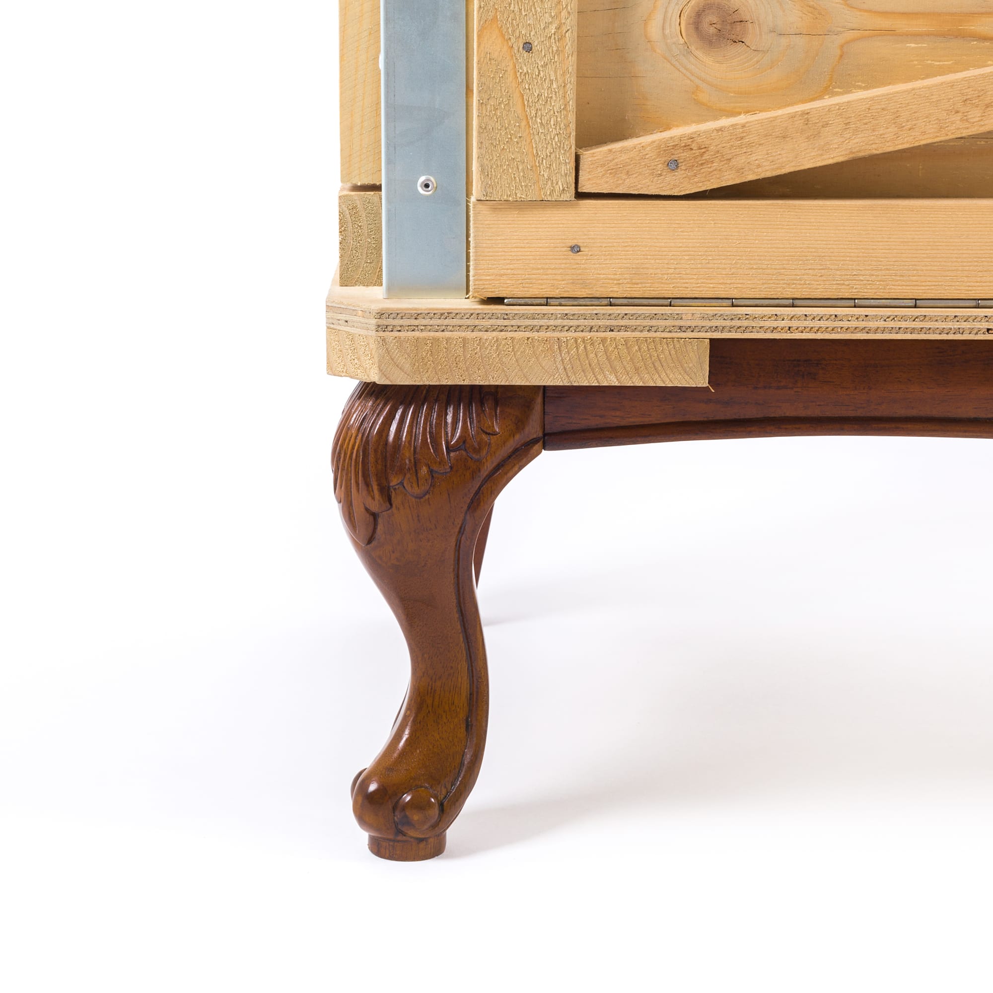 Designed by Marcantonio Raimondi Malerba for Seletti, this modern bedside table blends two different styles in one quirky design. A packing case boasting various labels and signs is paired with ornate Louis XIV legs. The bright green interior features one shelf and two storage spaces. Handmade from solid wood, this Export Como Bedside Table is as impressive in its durability as it is in its distinctive design. It can be used on its own to create a focal point in a bedroom or alongside other pieces of furniture from the Export Como collection. Made in Italy.