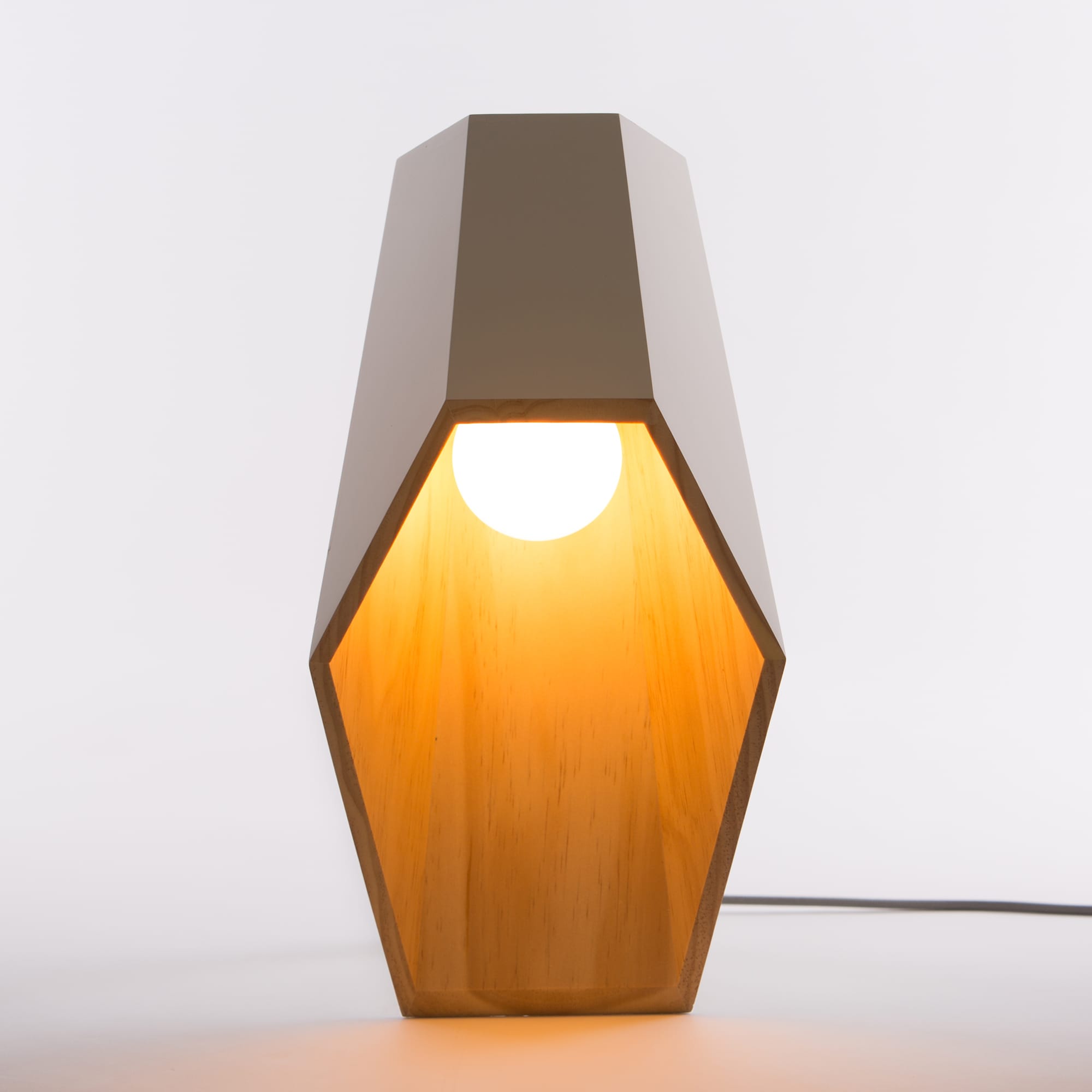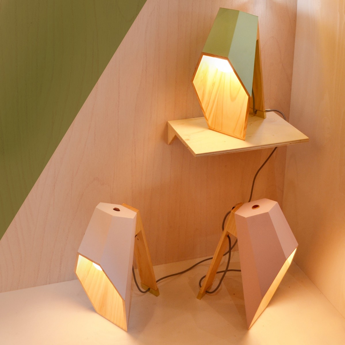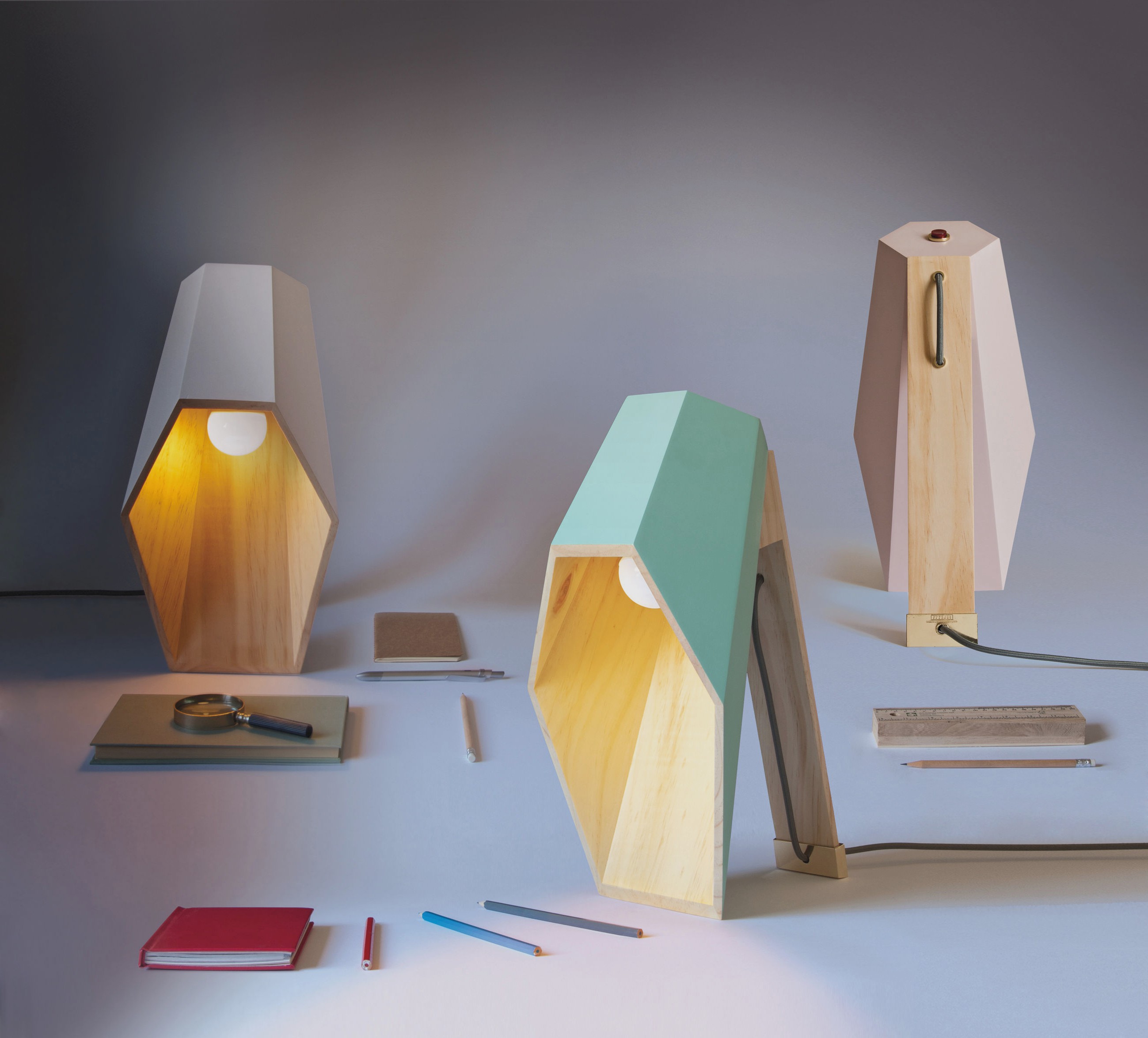 Woodspot是一盏台灯,灵感来自Rene Magritte的“光明帝国”。该设计由一个底座和一个类似引擎盖的透光器组成,它提供了一种让人想起路灯的聚光灯,就像马格里特世纪中叶的油画中所看到的那样。木制的底座是用松木手工制作的,用天然油完成。扩散器采用白色或粉彩粉红或绿色漆,可与高达60W的灯泡一起使用。