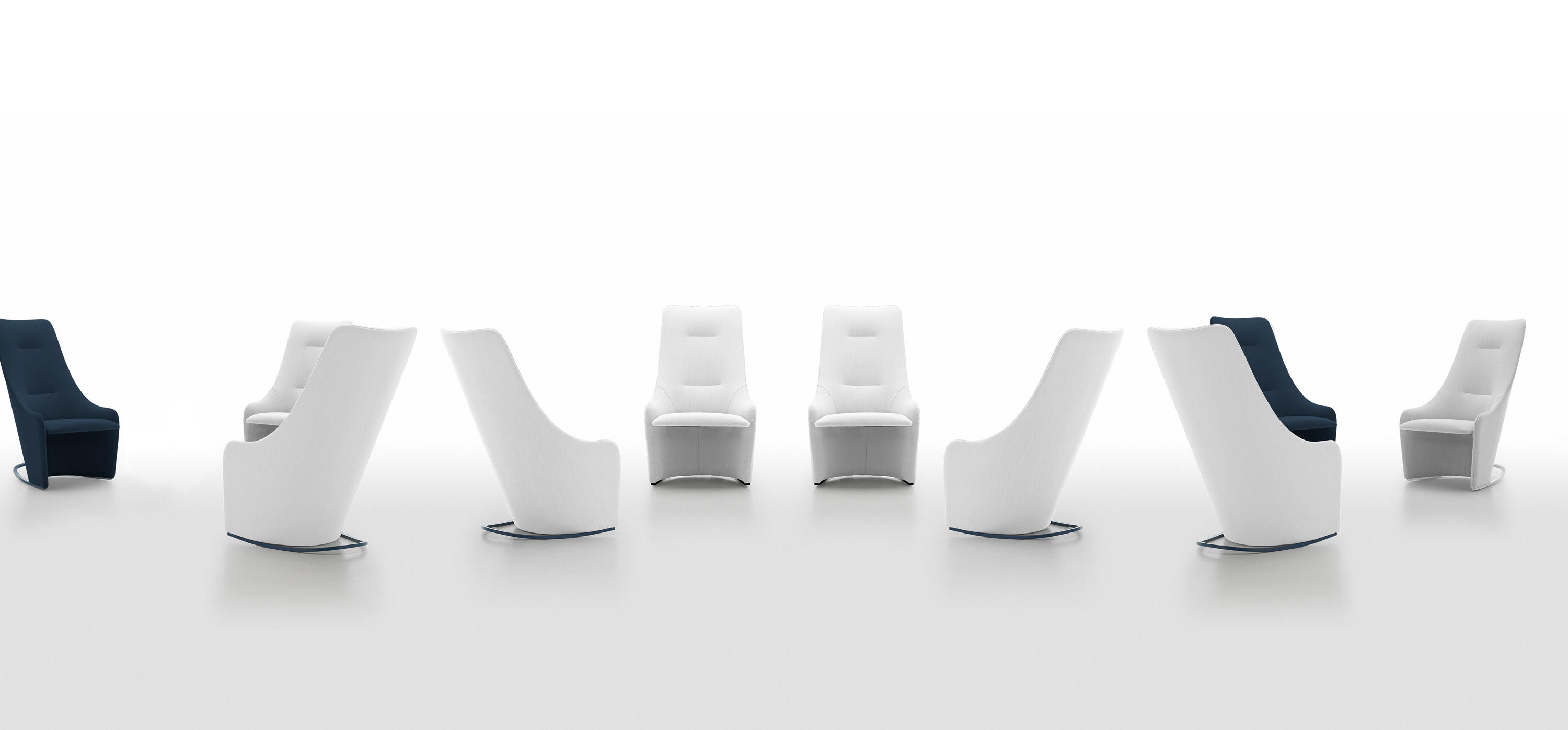 凪提供2个版本:摇摆和固定的扶手椅。