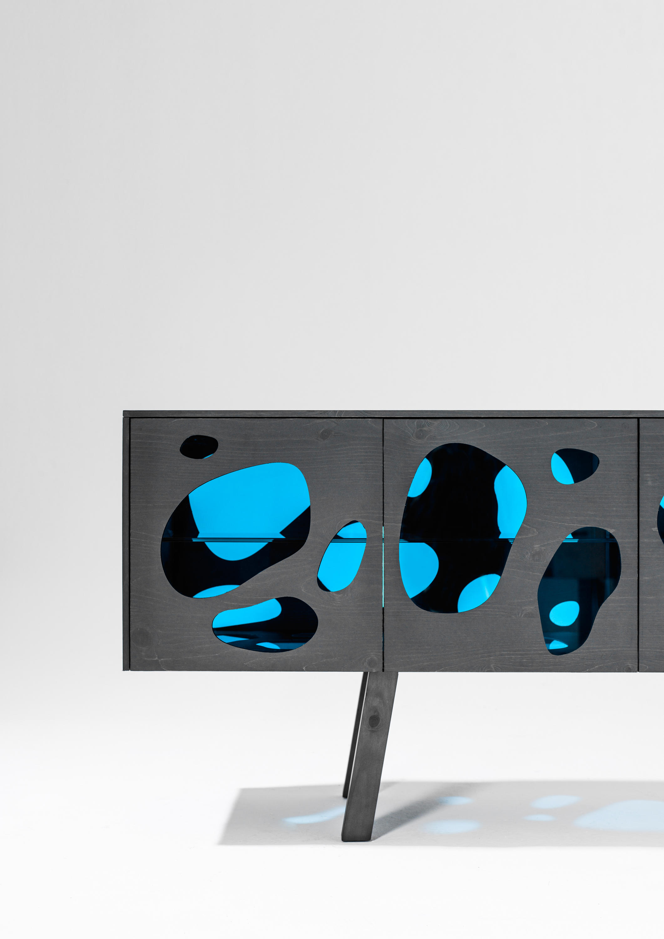 Aquário-带有门的木制餐边柜。 坎帕纳兄弟(Campana Brothers)设计的新橱柜Aquário。“我们与BD Barcelona Design的艺术总监Ramónúbeda保持联系已经有几年了。我们讨论了已经成熟并成为我们制作的自助餐的创意。费尔南多·坎帕纳(Fernando Campana)解释说:“灵感来自水族馆的想法,以创造出这件作品。” 温暖和寒冷。它已经成为我们设计语言的一部分。我也想玩对重的想法。玻璃的轻便和木头的体积。第一个的非物质性和第二个的物理性。” Fernando补充说:“餐边柜由木材,白蜡木或松木以及彩色玻璃门制成。