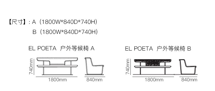 EL POETA 户外等候椅 系列尺寸/示意图