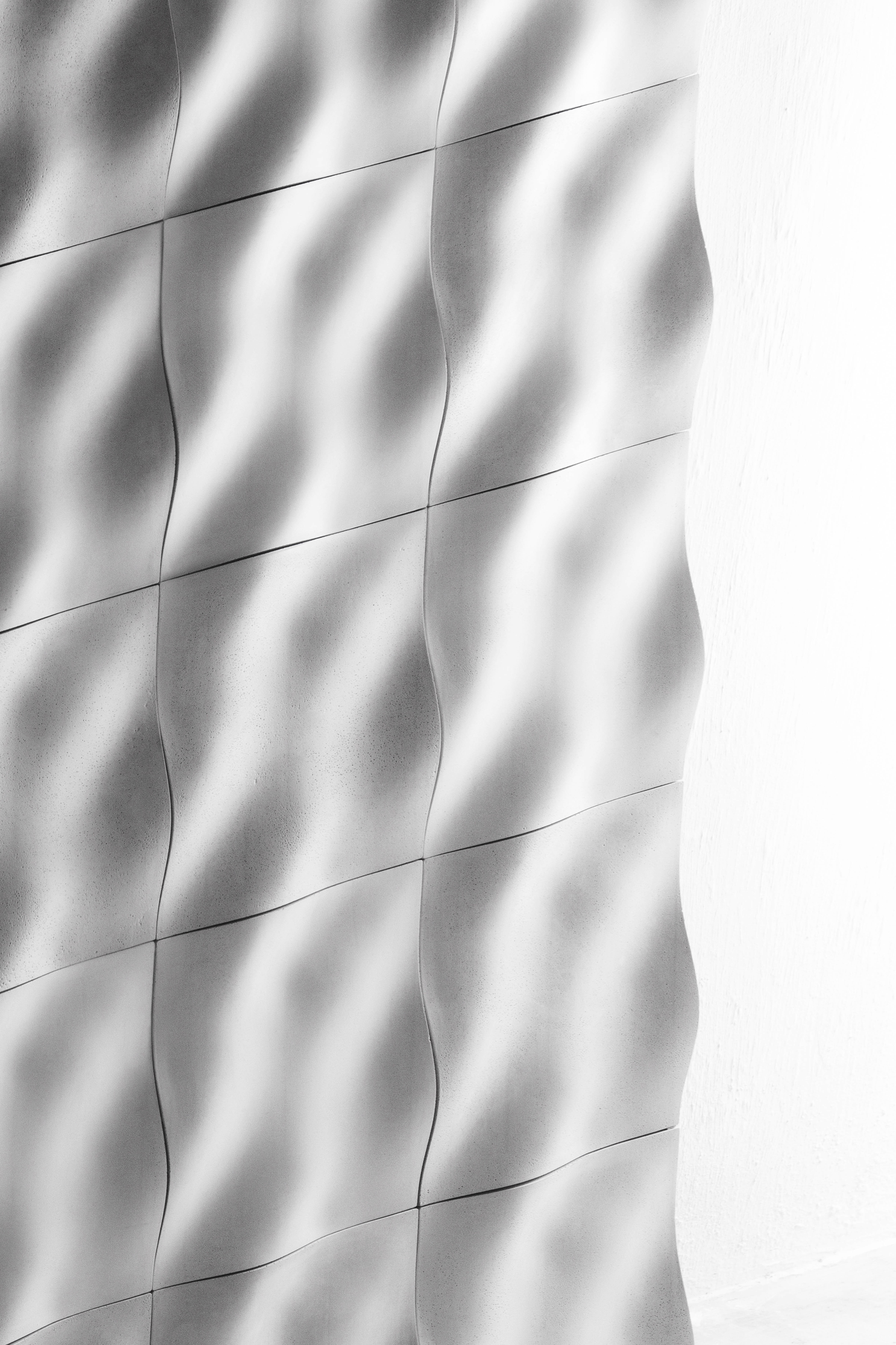 浪,以回收粉碎瓷片做40%的骨料,混合高强度混凝土浇注而成。生于世界最大的陶瓷国,不能不深深感受着陶瓷在这片土地上无处不在的应用和需求量。中国每年陶瓷产量占全球70%左右,而随着房地产业的不断发展,人们对陶瓷的需求更是日益增加。同时,这里的粘土资源也在千年如一日的开采中面临枯竭。满足高压的市场需求,缓解自然资源压力,混凝土装饰砖成为理想的替代品。高密度混凝土的特性使“浪”抗渗耐污,更易清洁。
