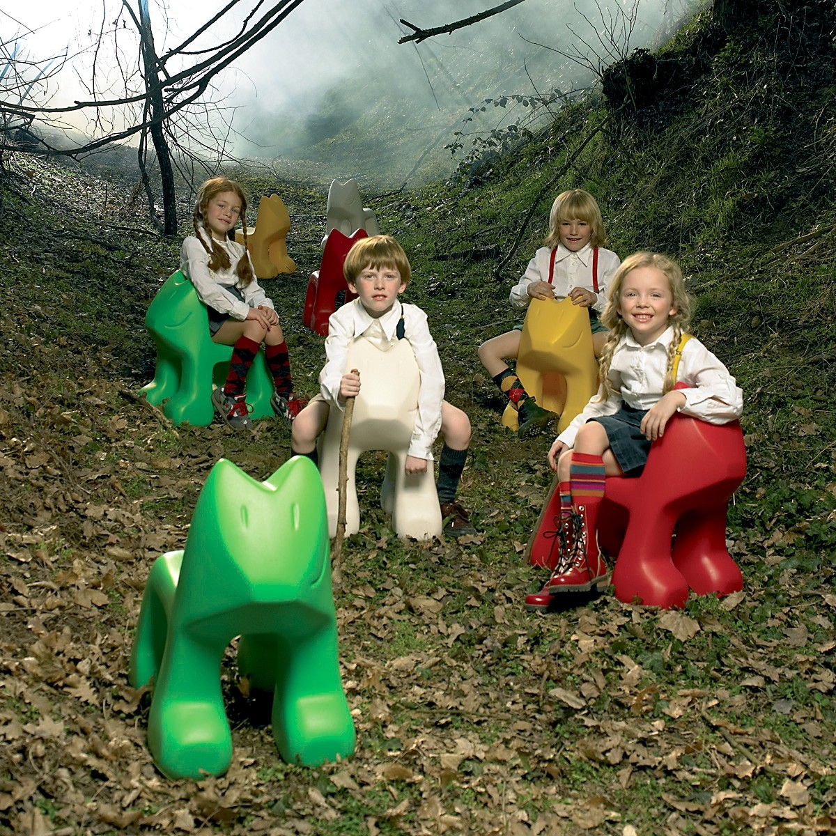西班牙設計是為 Magis me too 系列所設計另一款兒童座椅,可愛的小猫造型就像是家中多了隻寵物,聚乙烯旋轉模鑄。