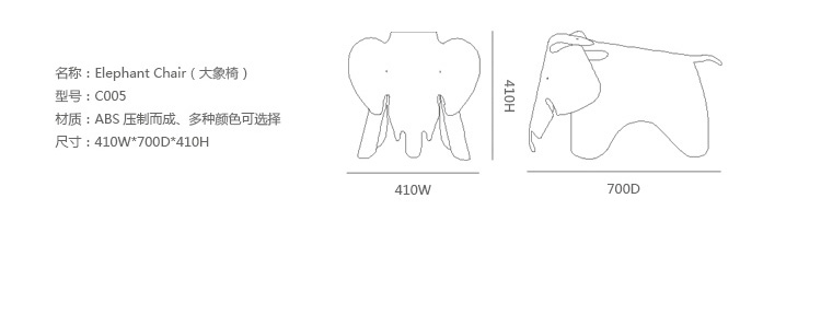 充滿童真和創意的可愛玩伴,是 Charles & Ray Eames 於1945年為女兒設計的玩具椅,由壓模合版技術製成的原型全球僅有兩張。昂貴的壓模合版製造技術始終沒有投入量產之中,直到2007年 Vitra 推出限量的 Plywood Elephant 之後,於2008年更是推出了塑膠版的大象兒童椅。材質的轉變不單迎合了設計師原本兒童玩具用途的初衷,更符合了 Charles and Ray Eames 長久以來的設計理念:「盡可能將最好的設計以最低的價錢分享給最多的人!