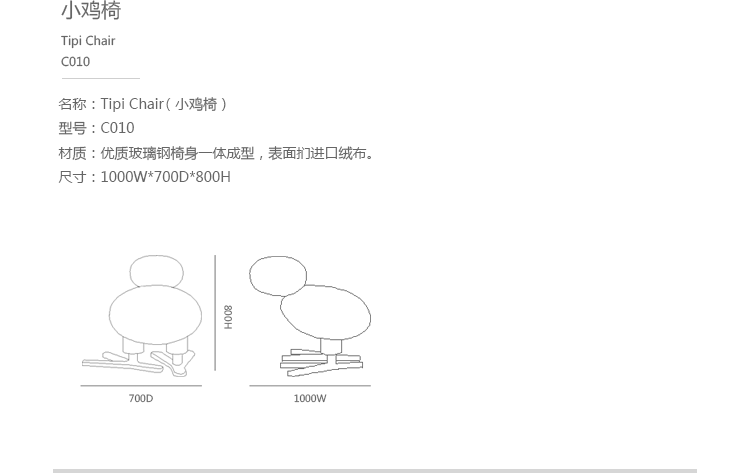 小鸡椅是2002年由芬兰设计师艾洛·阿尼奥(Eero Aarnio)设计,说到艾洛·阿尼奥(Eero Aarnio)也说说小马椅(Pony Chair),对于艾洛·阿尼奥(Eero Aarnio)来说“座的东西并不一定是椅子,也可能是玩具”小鸡椅也一样。在小马椅(Pony Chair 1972年设计)30后设计了这个有趣的儿童椅,和他当时的幽默和想像力一样。小鸡椅是由“Adelta”公司制造商。艾洛·阿尼奥(Eero Aarnio)的原创设计授权给“Adelta”公司制造商,小鸡椅是其中的一款。本产品,以及由“Adelta”公司生产的艾洛·阿尼奥(Eero Aarnio)的所有原创设计产品都在芬兰生产。