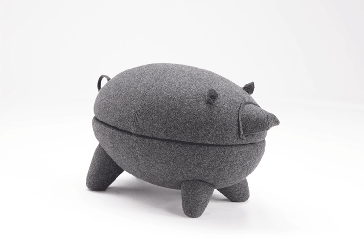 猪圆凳与现实中的动物“小猪”十分形似,设计灵感亦来源于此。基于猪圆凳简约的设计线条,其外表可做成油漆、皮革或布,颜色搭配更为丰富多彩,方便搭配各种场景和范围。猪圆凳同时还是一张多功能的圆凳,取去猪的上半部分,可作为茶几使用,其材质为玻璃钢,下隔层可以放置小物件和杂志等。